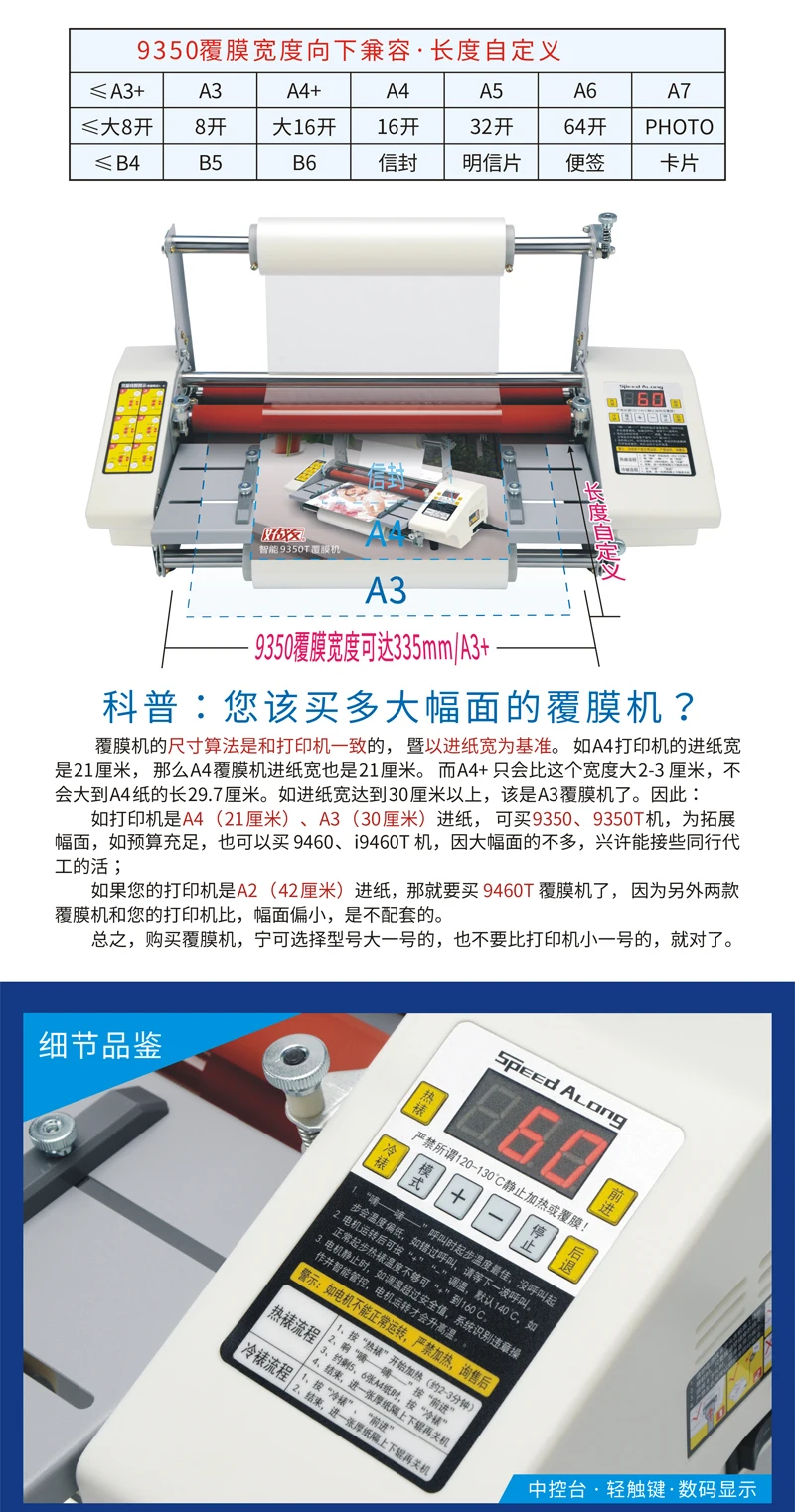 Largeur du revêtement du film : A3+/33.5 cm --Personnalisation de la longueur