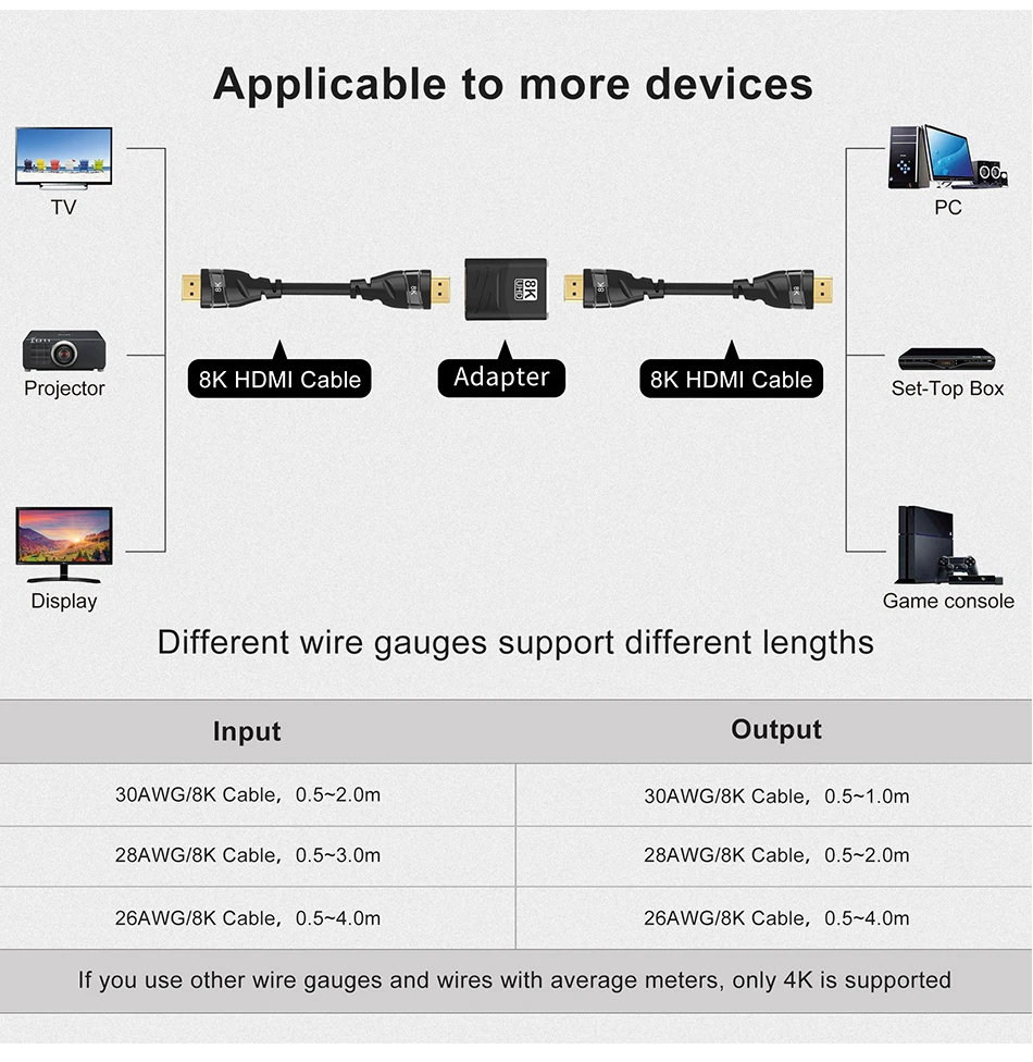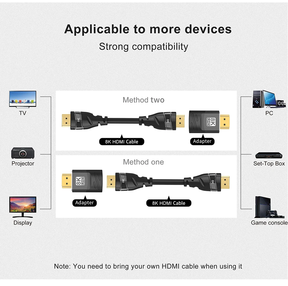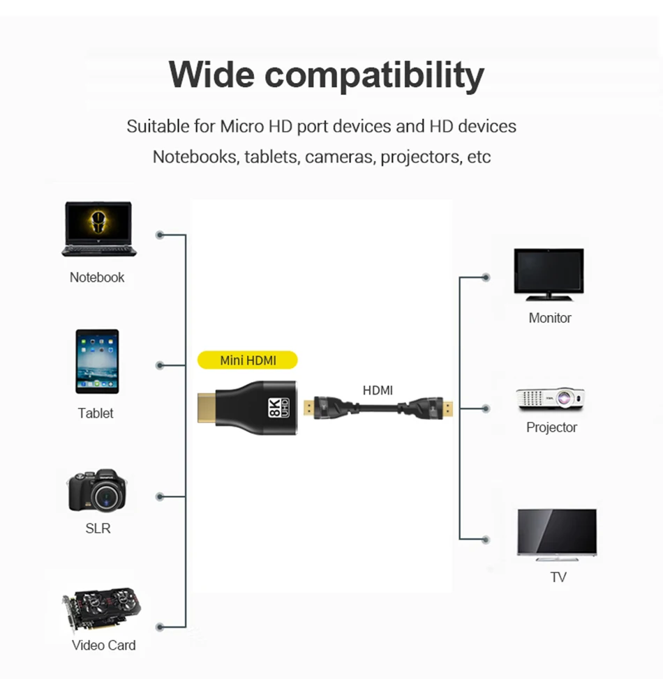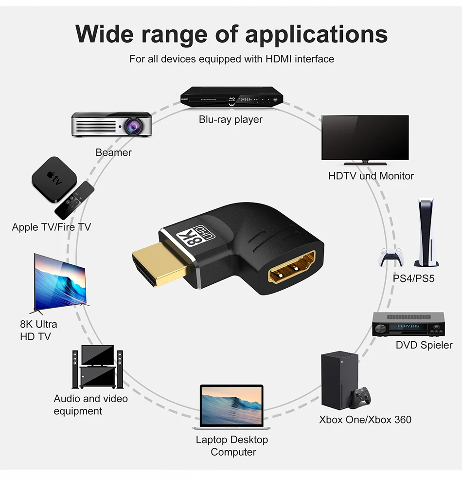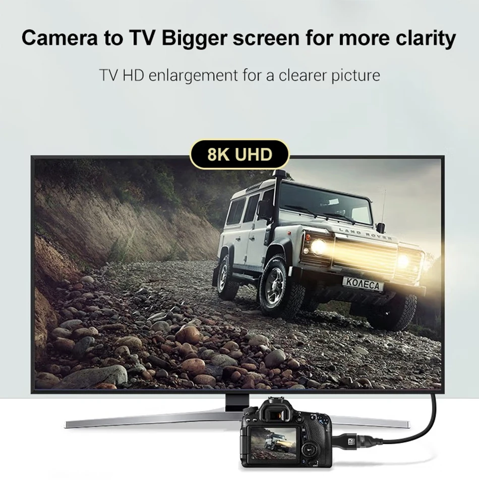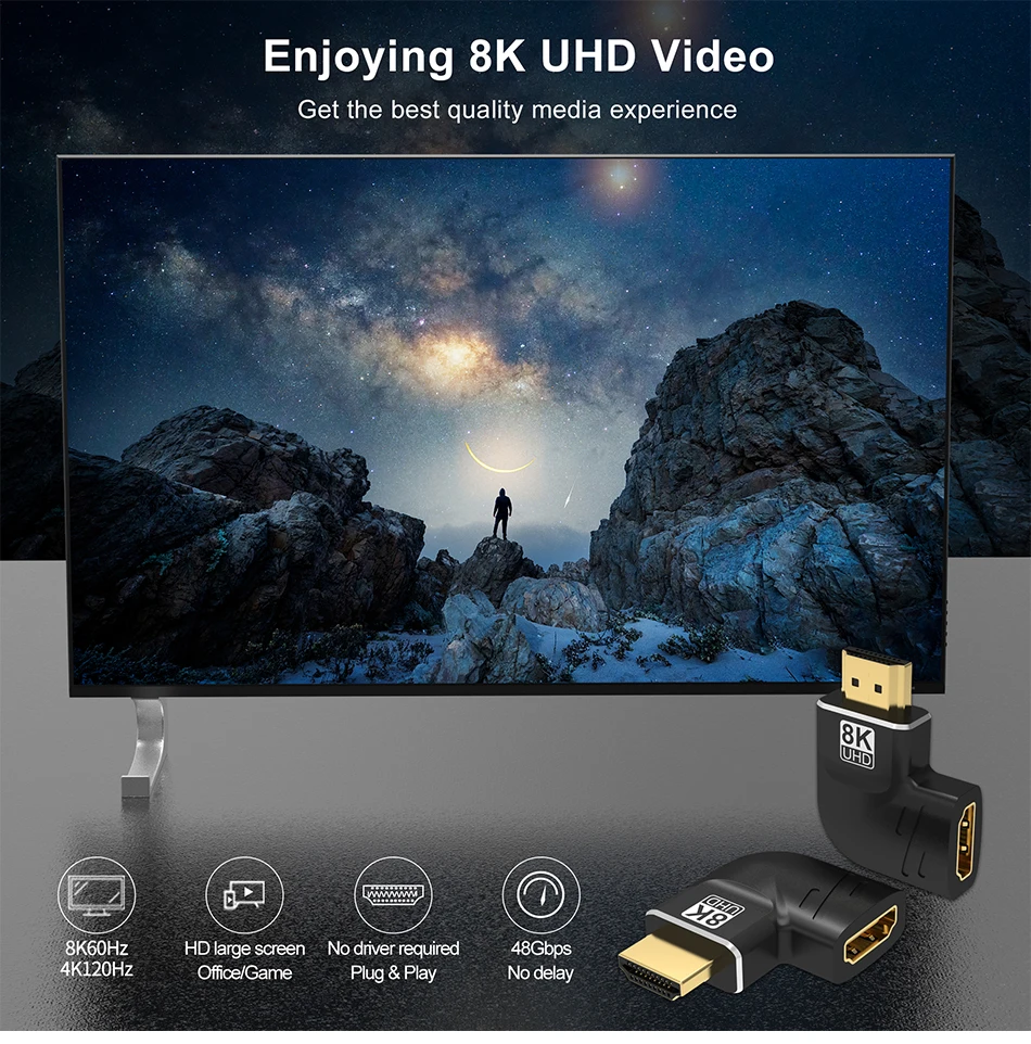 Prise en charge 8K@60Hz, 4K@120Hz/60Hz, 2K 144Hz, adaptée à tous les appareils dotés de la norme HDMI 2.1, rétrocompatible avec HDMI 2.0 précédent, 1.4, 1.3, 1,2 et 1.1.Avec une bande passante de 48 Gbit/s pour les dernières fonctionnalités, profitez de l'expérience ultime ultra haute définition du grand écran.