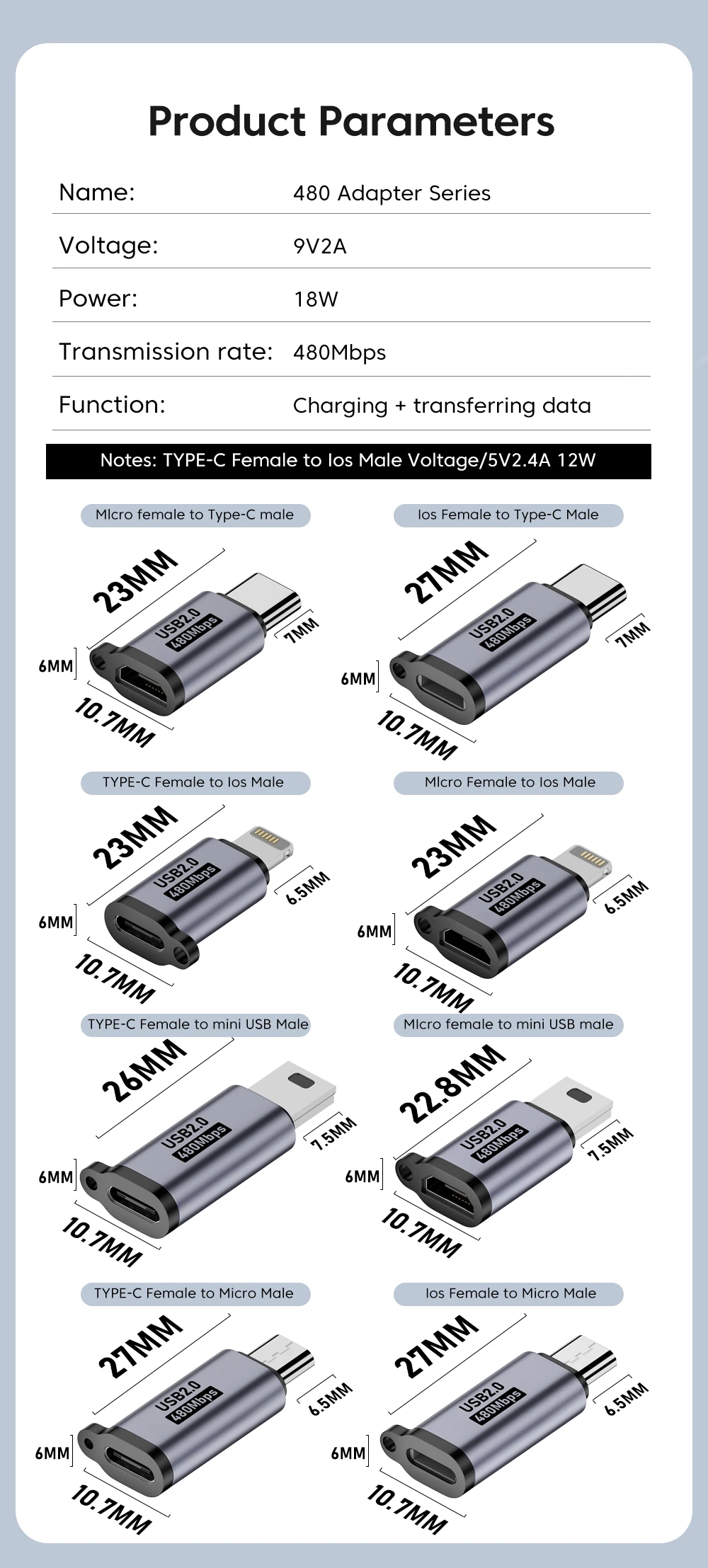 Numéro de Modèle: usb c to Lightning/micro usb to type c/usb to type c adapter