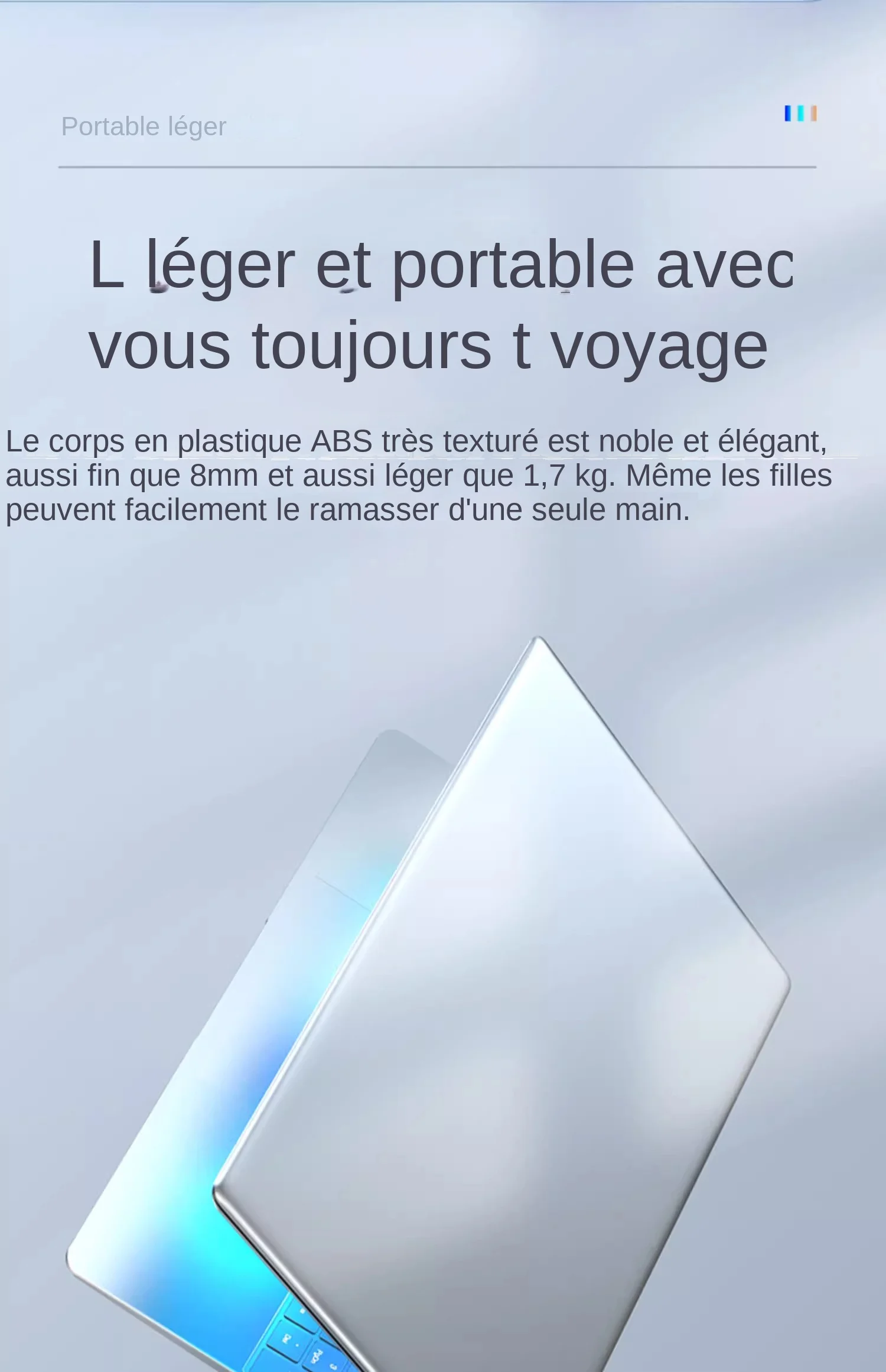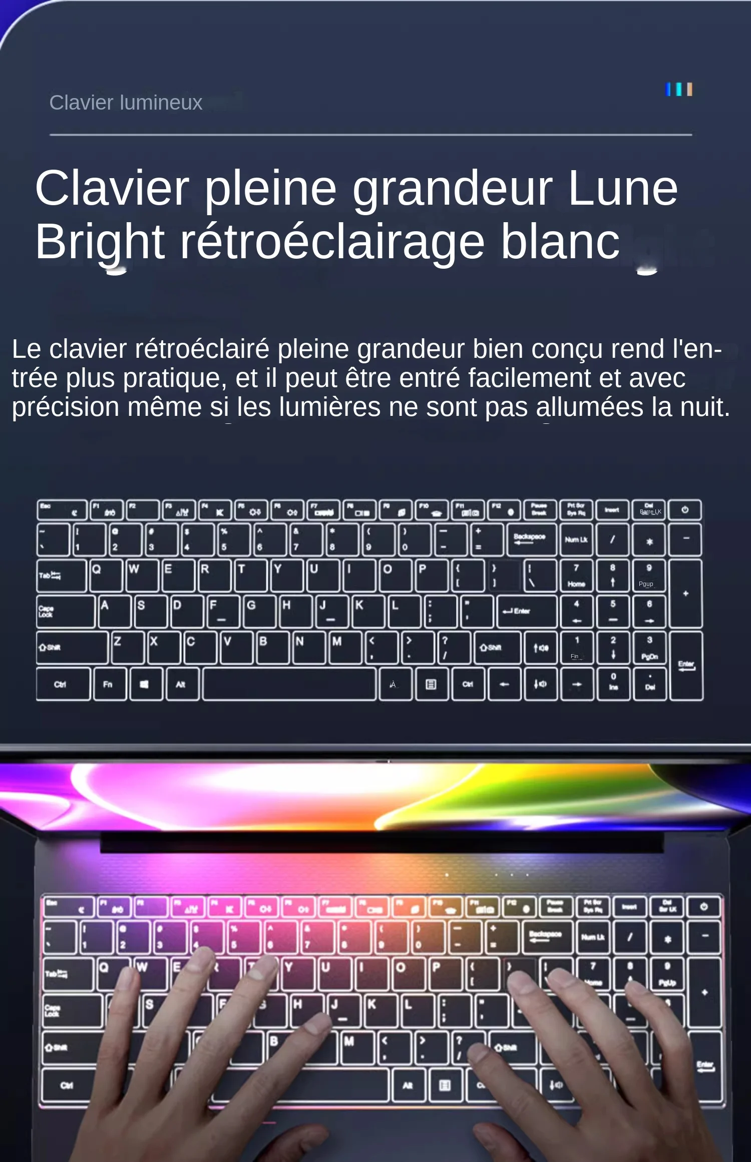 1. Le clavier est en anglais. Nous vous enverrons des autocollants pour clavier.