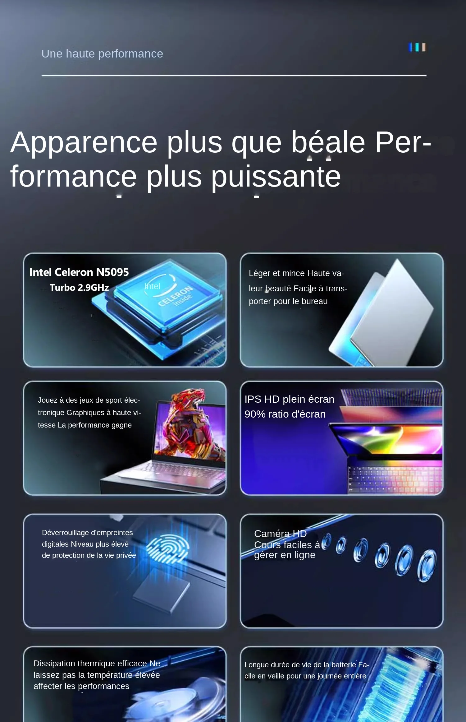 Caractéristique: bluetooth,Caméra,Clavier rétroéclairé,Reconnaissance d'empreintes digitales