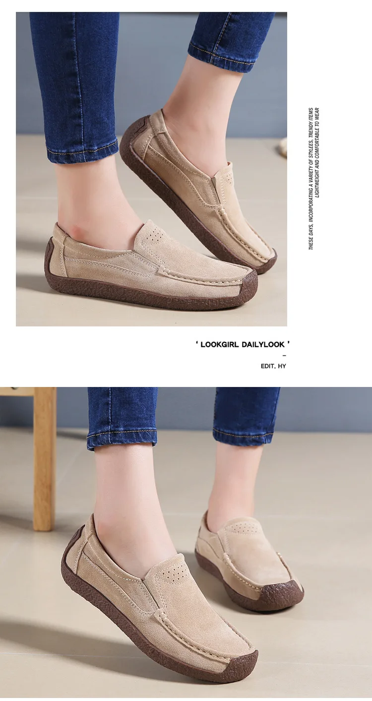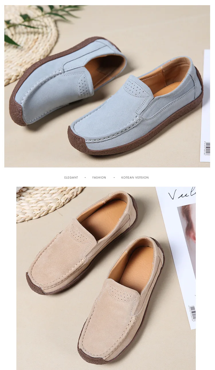 Chaussures décontractées confortables à la mode et légères pour femmes en daim chaussures décontractées respirant manches coulissantes chaussures de conduite pour femmes