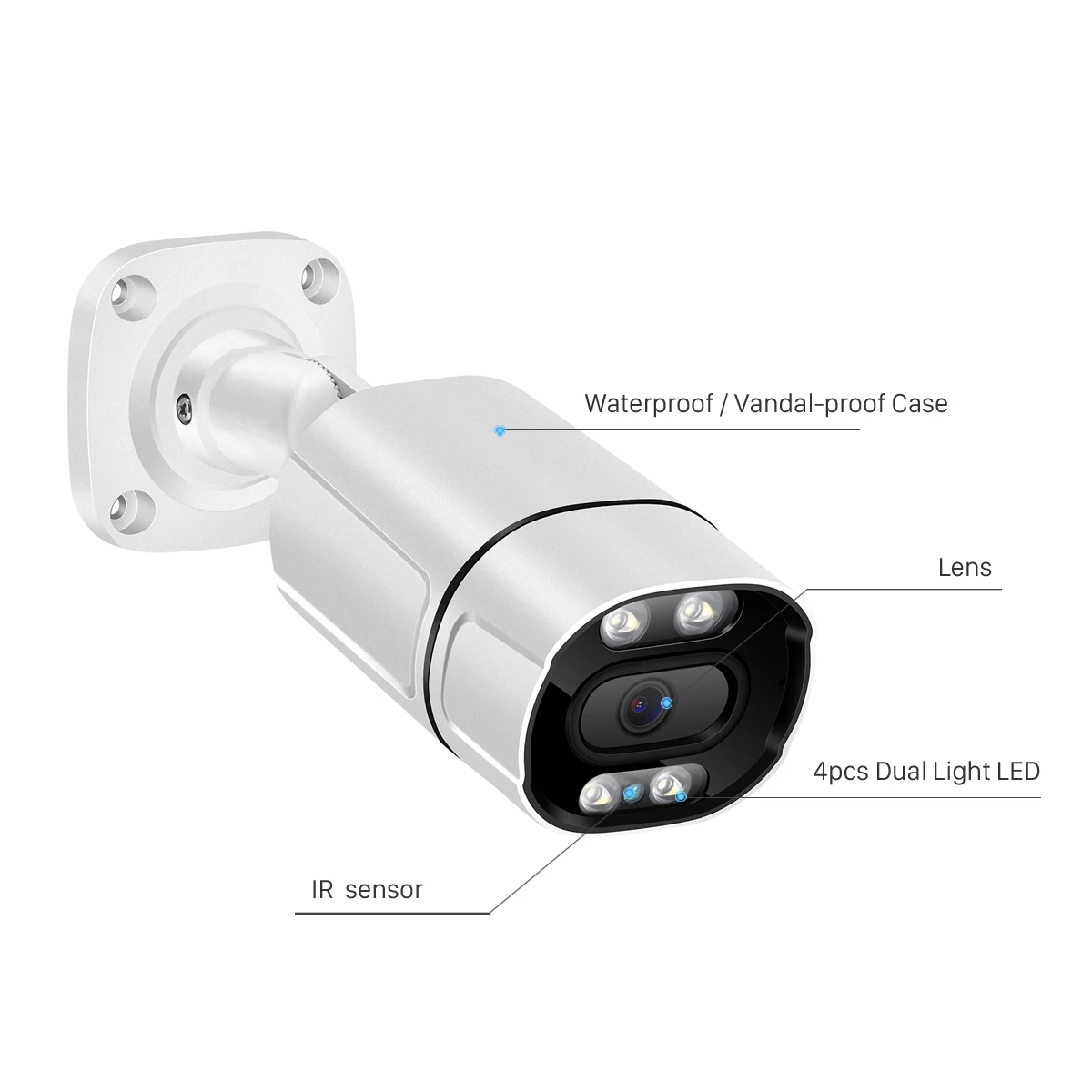 ● With IR-CUT, Support day/night switch, up to 15m IR night vision;