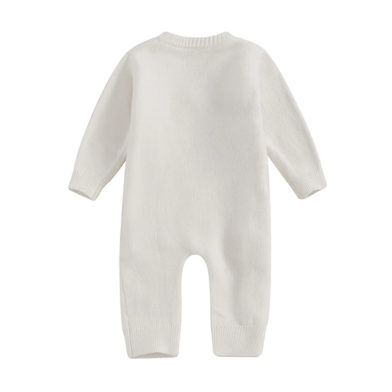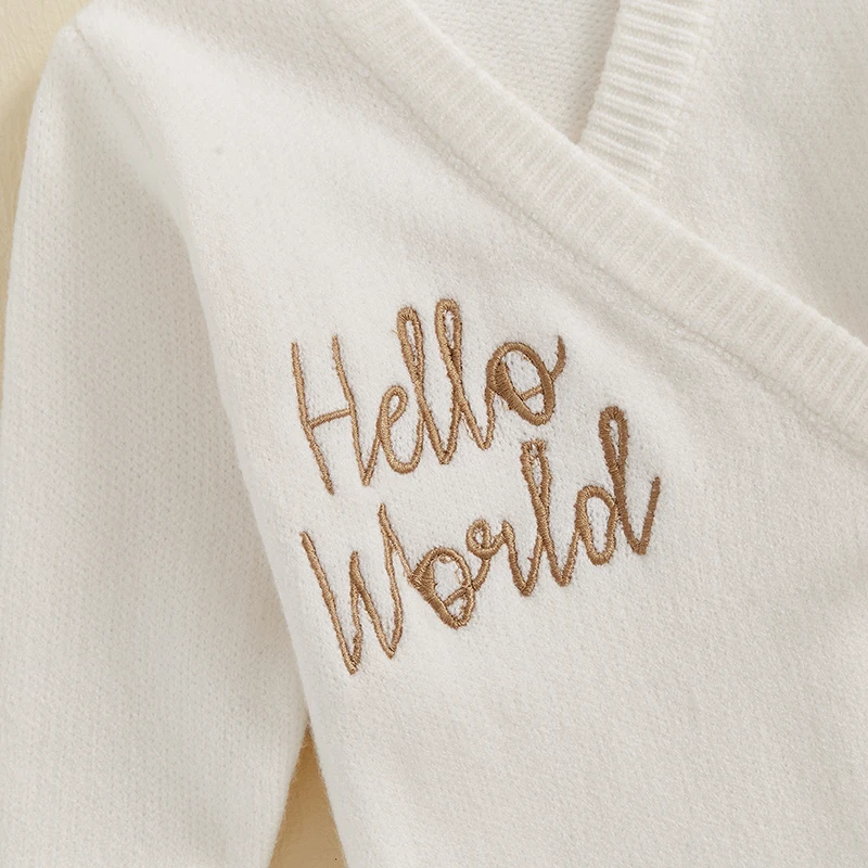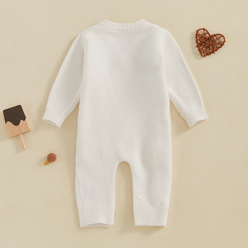 Infantile Automne Tricot Barboteuse Lettre Broderie Manches Longues Wrap Col V Pleine Longueur Pull Jumpsuit