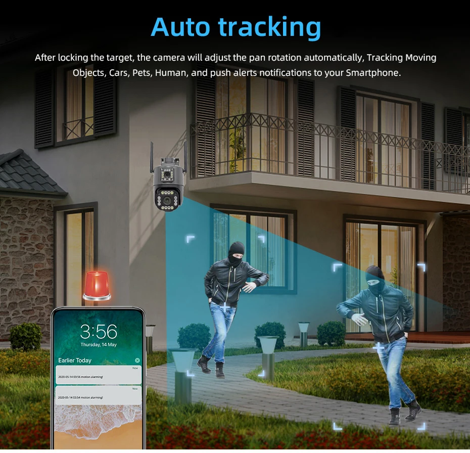 Tracking Moving Objects, Cars, Pets, Human, and push alerts notifications to your Smartphone.