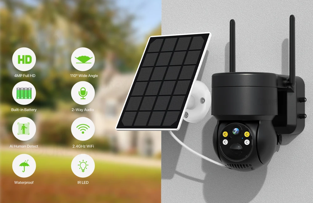 Outdoor Security Camera: Solar Panel PTZ Camera