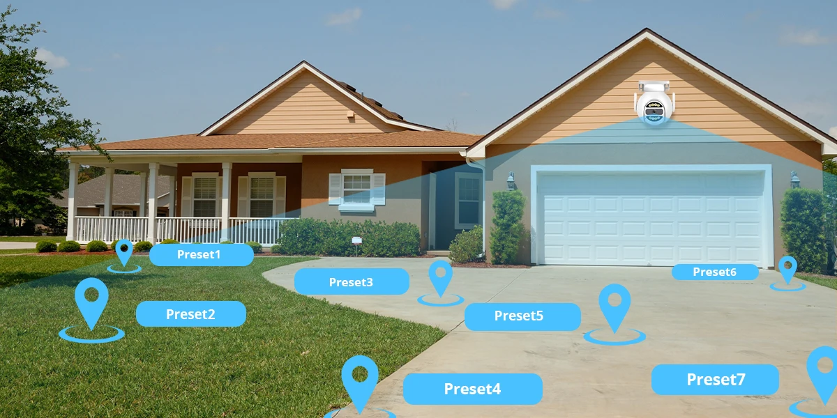 8 positions prédéfiniesPour les zones importantes, vous pouvez également le définir comme point prédéfini.L'écran d'image passera rapidement à la position correspondante en cliquant directement sur le point prédéfini défini à l'avance.
