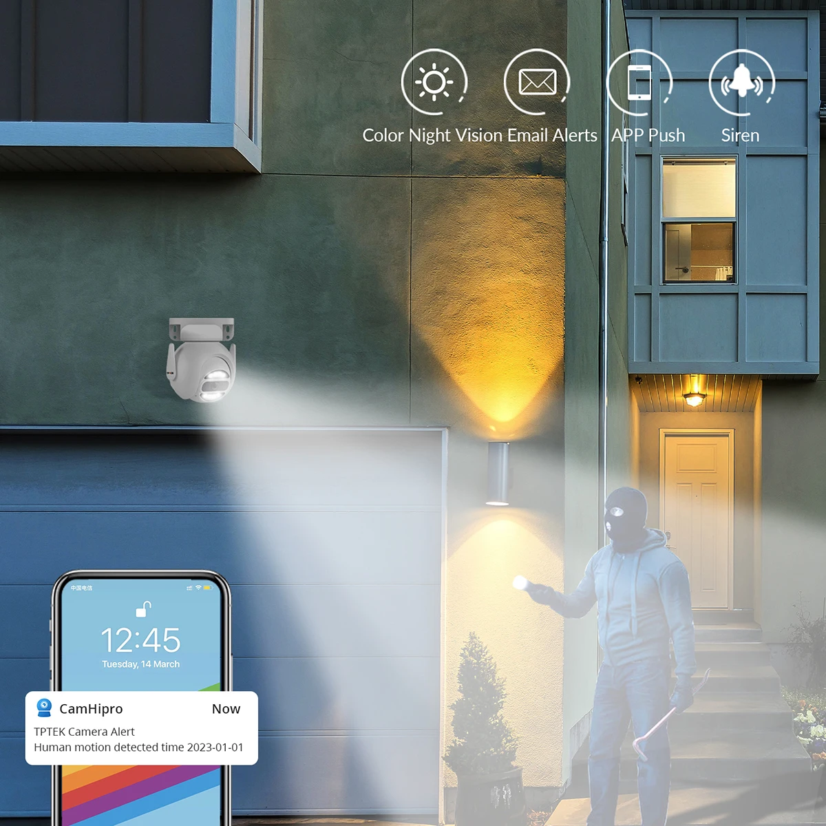 Double avertissement pour les indésirables Une fois qu'un intrus est détecté, les projecteurs et la sirène de la caméra seront déclenchés ou activés manuellement pour avertir le criminel potentiel.Arrêtez le crime avant qu'il ne se produise.