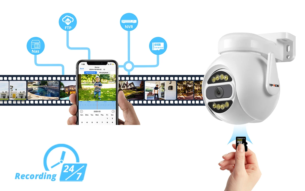 Prise en charge de la carte TF/carte mémoire MicroMax.prend en charge 128 Go (la carte TF est facultative).Pratique pour regarder la lecture vidéo sur téléphone ou PC à tout moment.Prise en charge du protocole Onvlf, prise en charge du nvr tiers, Blue Iris, iSpy, Synology Nas, Qnap Nas