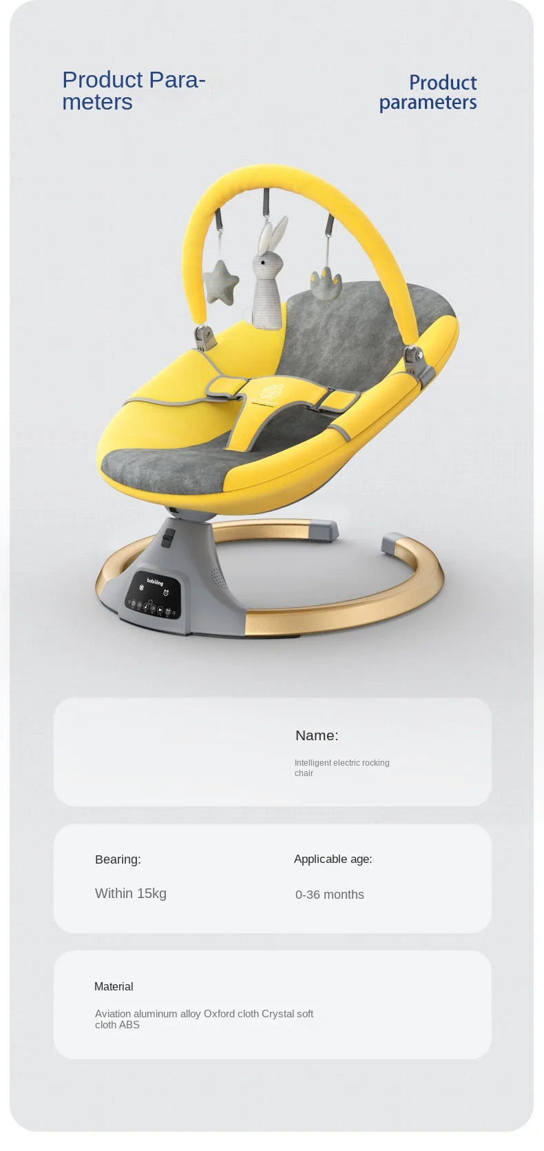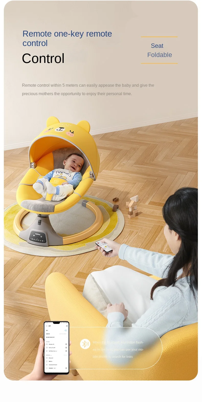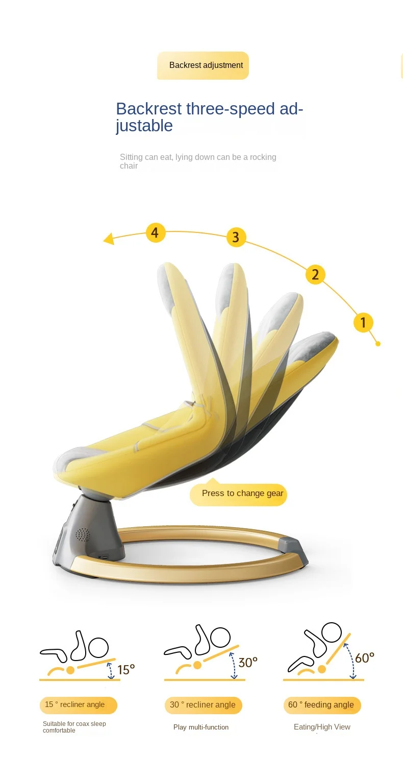 Balancer électrique : équipé de 4 modes de balancement, bébé peut s'endormir avec un balancement confortable, et les parents peuvent également régler facilement l'intensité et le mode du balancement du fauteuil à bascule grâce à la télécommande.