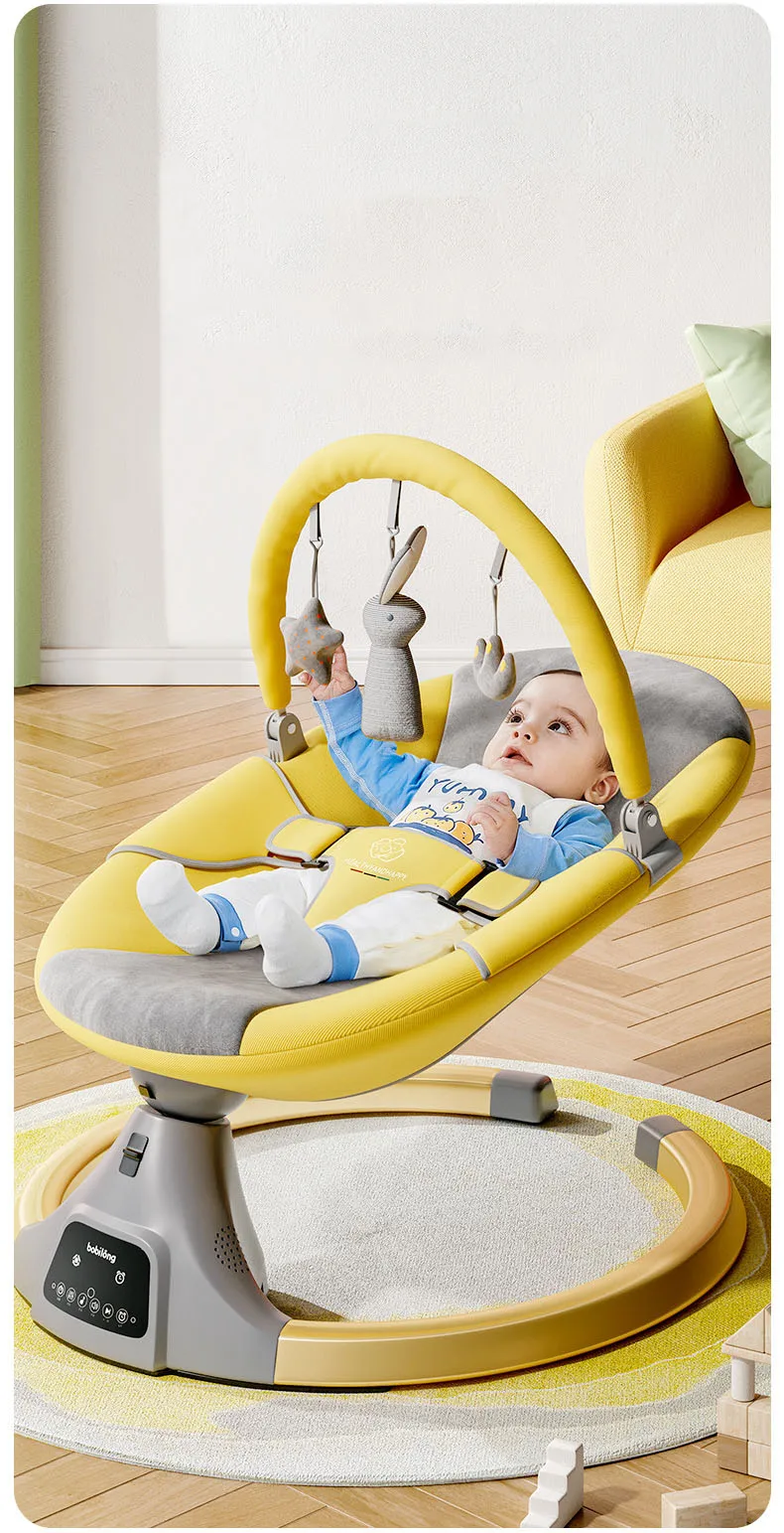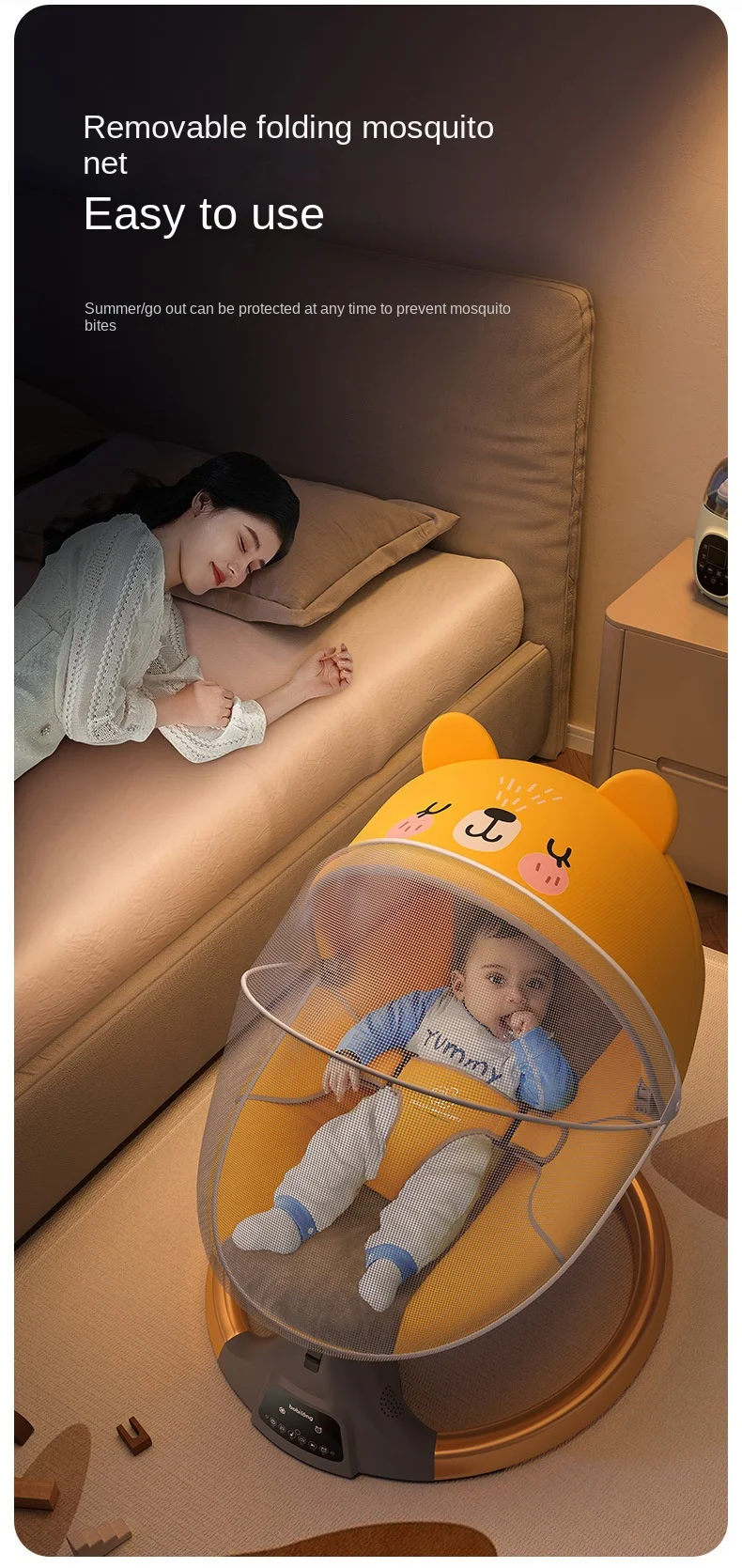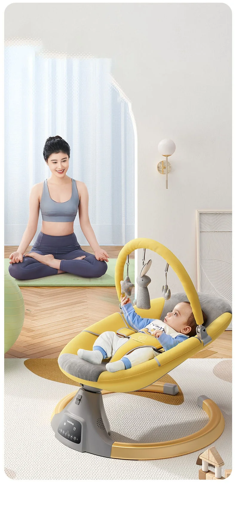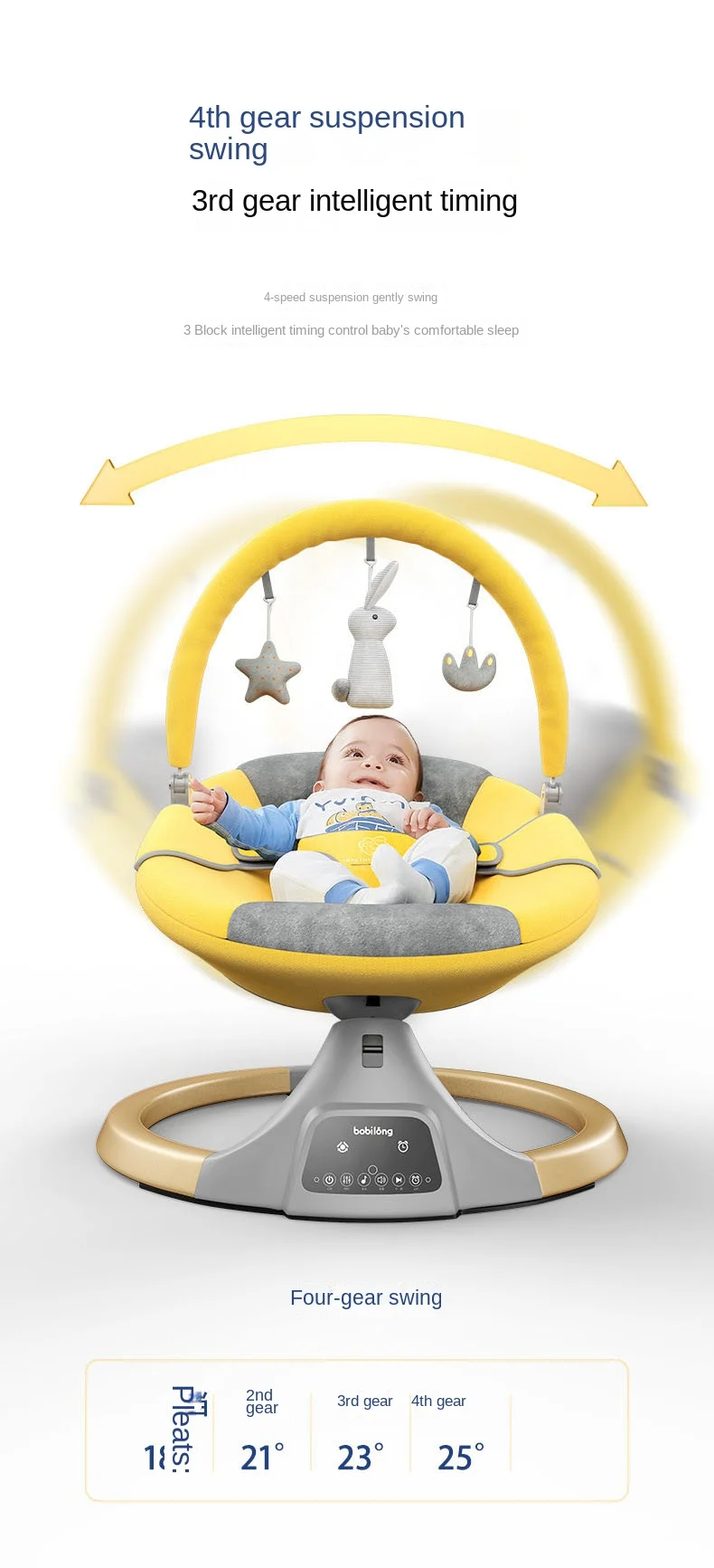 Balancer électrique : équipé de 4 modes de balancement, bébé peut s'endormir avec un balancement confortable, et les parents peuvent également régler facilement l'intensité et le mode du balancement du fauteuil à bascule grâce à la télécommande.