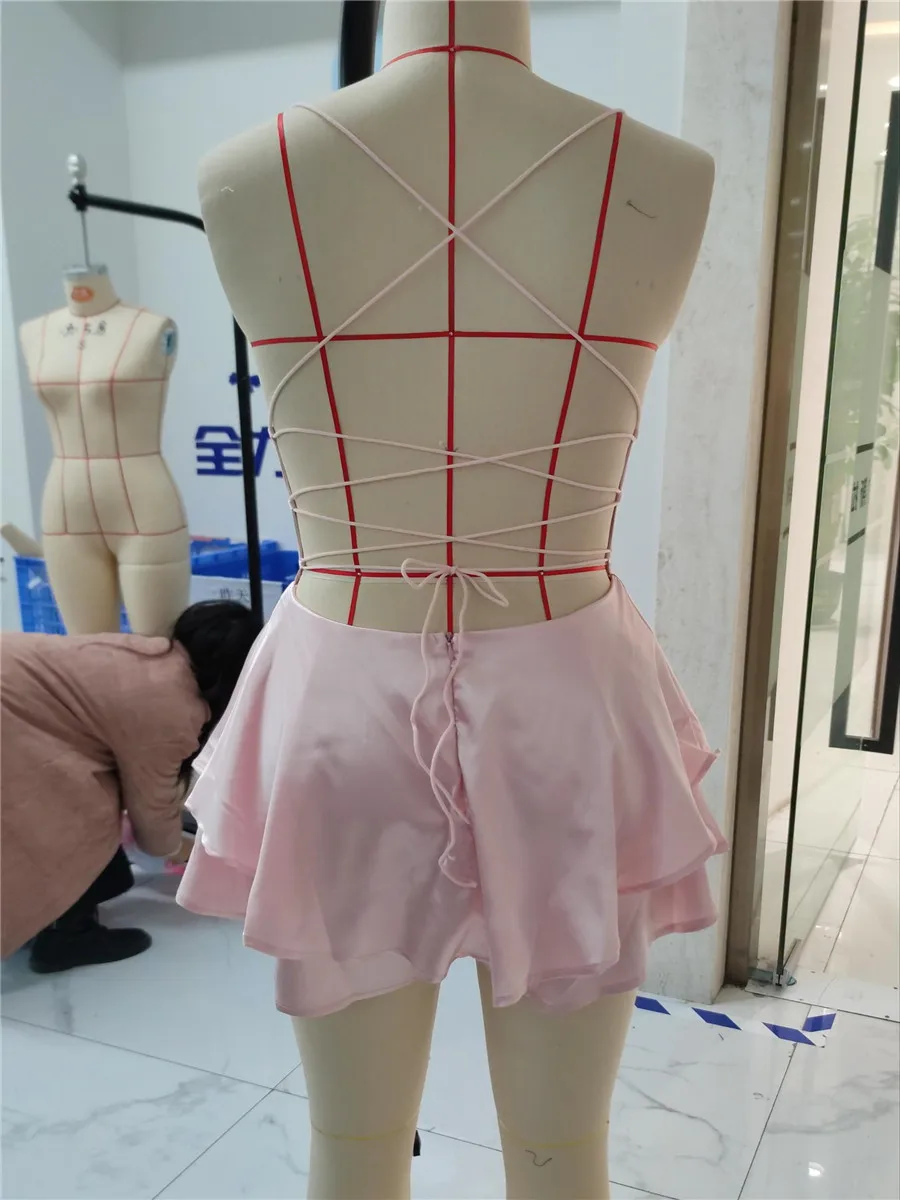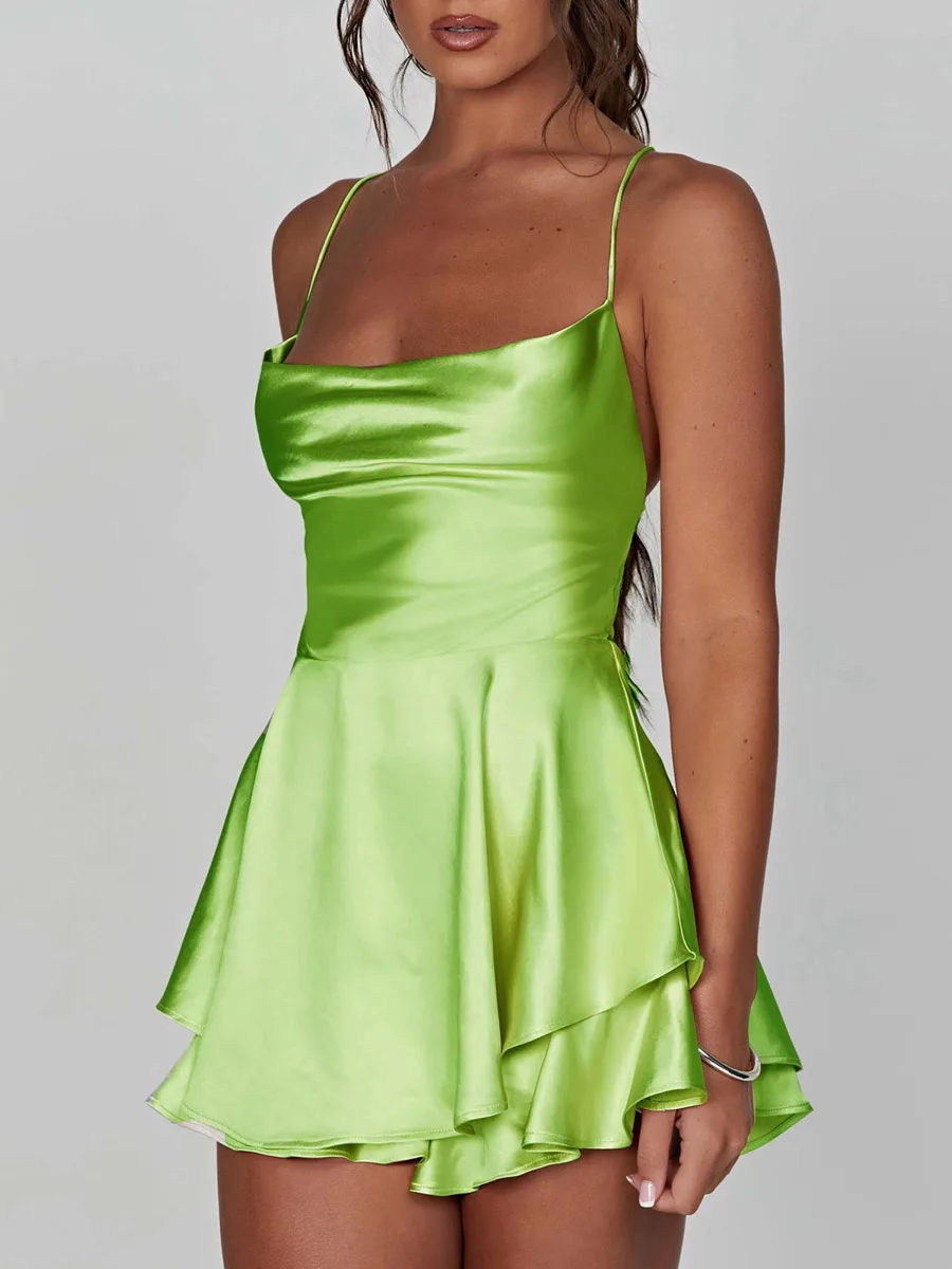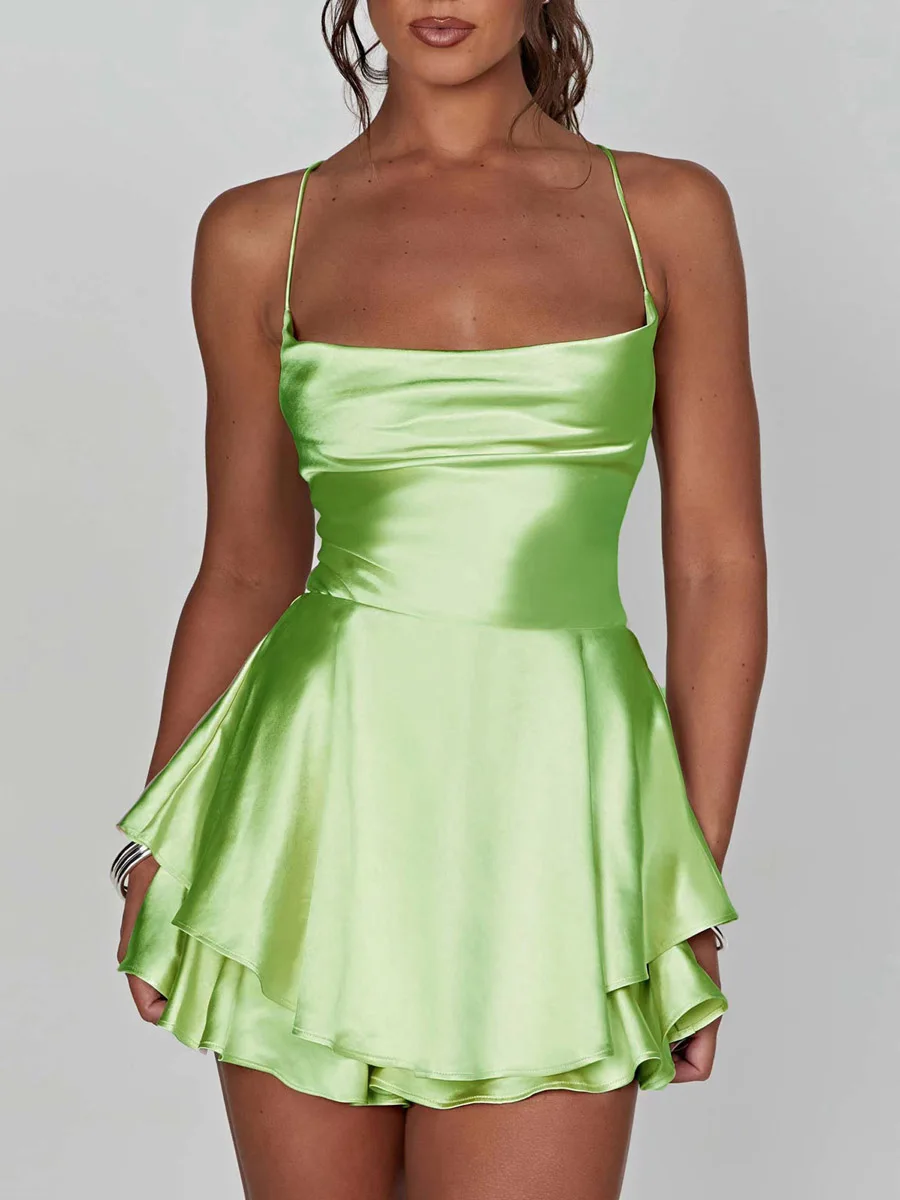 Combinaisons Cami couleur unie pour femmes Combinaisons courtes à col bénitier et sans manches Combinaisons d'été croisées Romper Clubwear dos nu