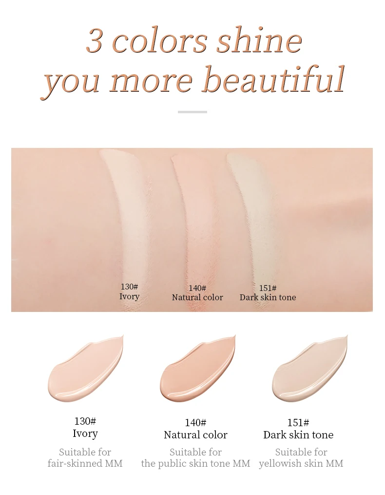 Avantage: Éclatant,Blanchiment,Correcteur,Élimination des taches de rousseur,Imperméable/résistant à l'eau