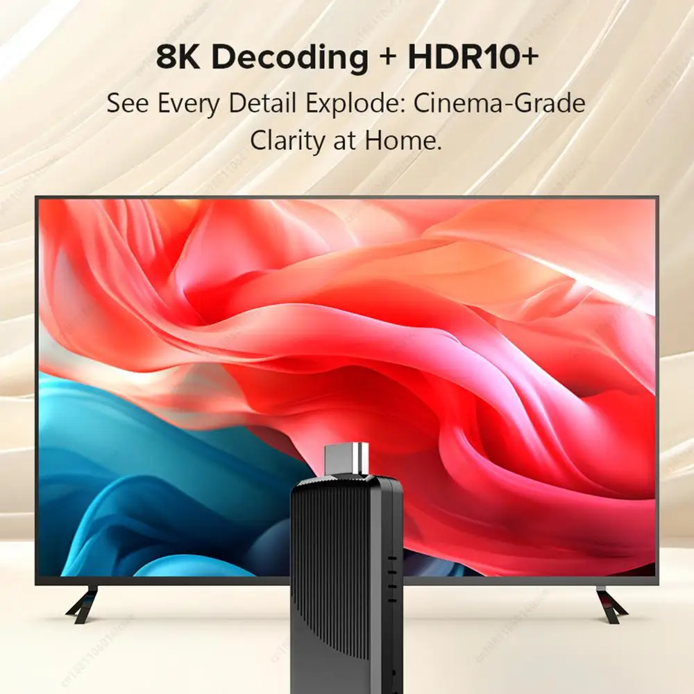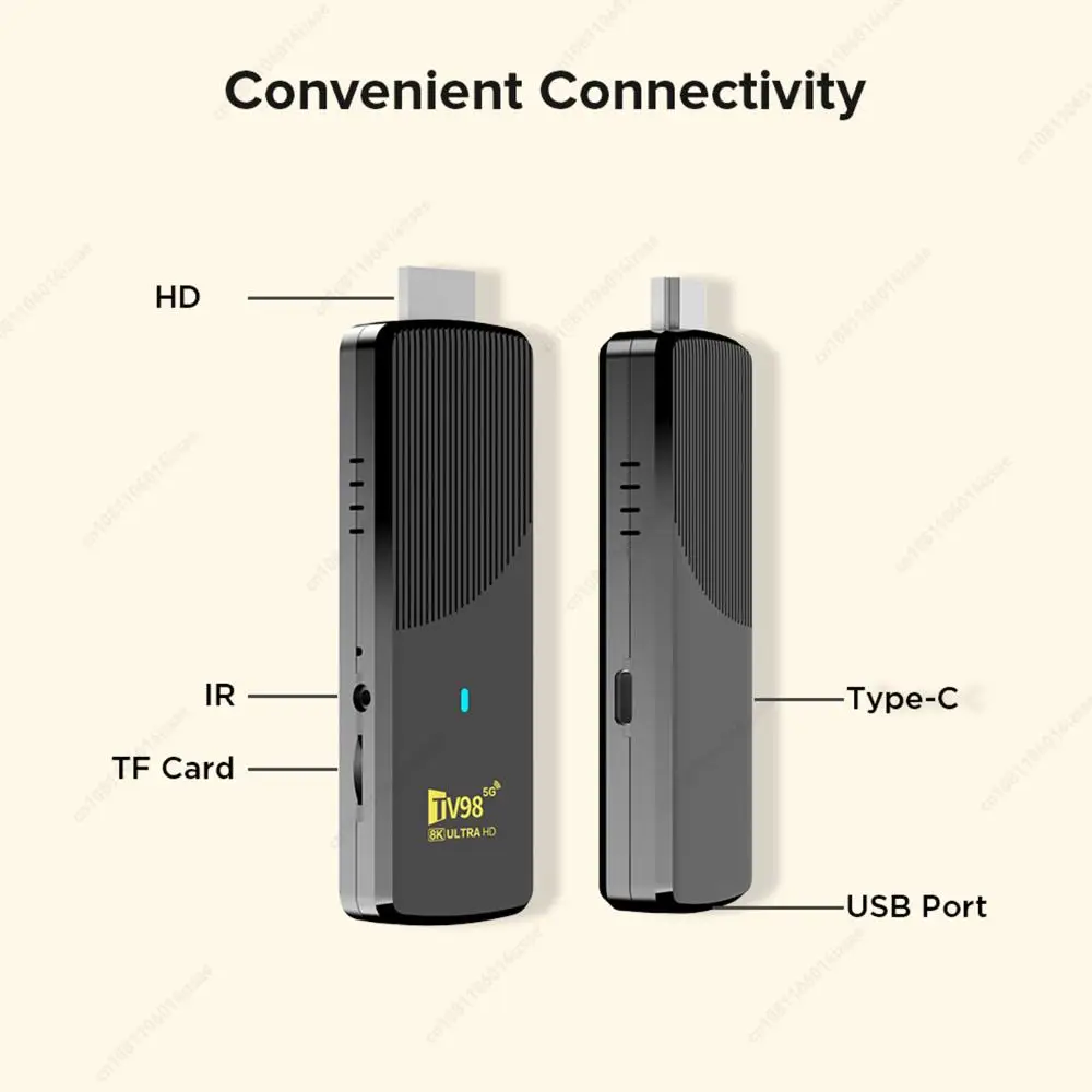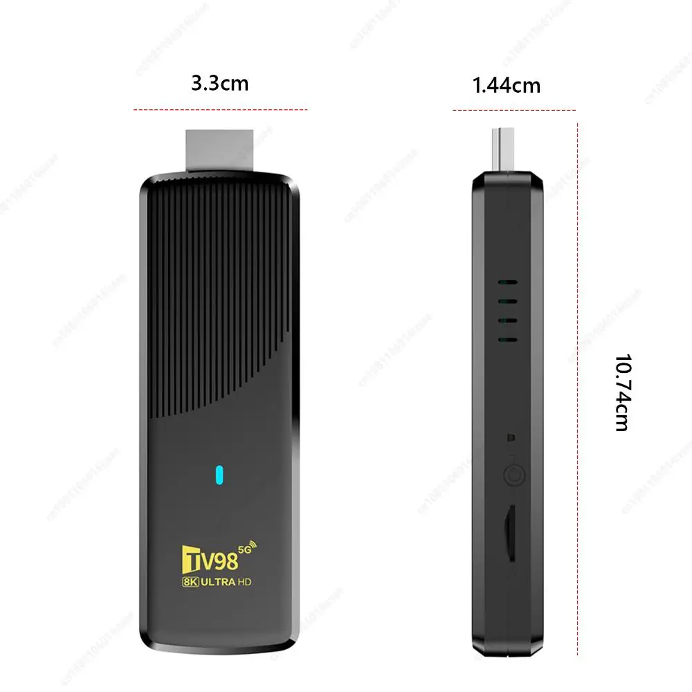 Caractéristiques : 1. Processeur quadricœur hautes performances : Équipé du Allwinner H313 Quad Core ARM Cortex-A533, ce lecteur vidéo domestique offre un multitâche transparent et un décodage vidéo 4K ultra HD pour des visuels magnifiquement fluides, que vous diffusiez des films, jouiez ou manipuliez des tâches de bureau. 2. Connectivité polyvalente : Le décodeur dispose d'une sortie 4K compatible HDMI, de deux ports USB, d'un emplacement pour carte TF et d'un récepteur IR.Grâce à la technologie WiFi double bande et lecteur multimédia BT5.0, profitez d'une diffusion d'écran sans fil à latence ultra faible et d'une connexion efficace de périphériques pour tous vos besoins de divertissement. 3. Compatibilité multimédia universelle : Cet appareil intègre un puissant moteur de décodage prenant en charge plus de dix formats vidéo principaux jusqu'à 4K à 60 ips.Faites l'expérience d'une synchronisation audio et visuelle immersive de qualité cinéma, gérant plus de 30 types de fichiers sur votre lecteur vidéo TV HD 4K avec un affichage de sous-titres multilingue en temps réel. 4. Intégration du système d'exploitation Android intelligent : Préinstallée avec Android 10.0 (mise à niveau vers 14), cette clé TV offre accès aux principales plateformes de streaming et aux applications de productivité téléchargeable.Refléchissez facilement le contenu de votre téléphone ou PC sans fil, prenant en charge le travail, les appels vidéo et le divertissement dans un seul hub. 5. Extension flexible et contrôle amélioré : Connectez directement une souris/clavier sans fil 2,4 GHz, développez le stockage jusqu'à 64 Go via une carte TF et connectez un audio haut de gamme.La conception du lecteur vidéo domestique s'adapte aux salons, aux espaces de conférence et aux configurations de jeu, répondant ainsi aux besoins de vie intelligents multi-scènes. Spécification : Processeur : processeur Allwinner H313 quadricœur ARM Cortex A53 GPU : G31 OpenGL 3.2 RAM : 1 Go (mise à niveau à 8 Go) Stockage Flash : 8 Go (mise à niveau à 128 Go) Wi-Fi : 802.11 b/g/n 2,4G + Wi-Fi 5G + Bluetooth 5.0 Bluetooth : BT 5.0 Matériau : plastique Dimensions : 108,00 x 36,00 x 15,00 mm / 4,25 x 1,42 x 0,59 pouces Remarque :