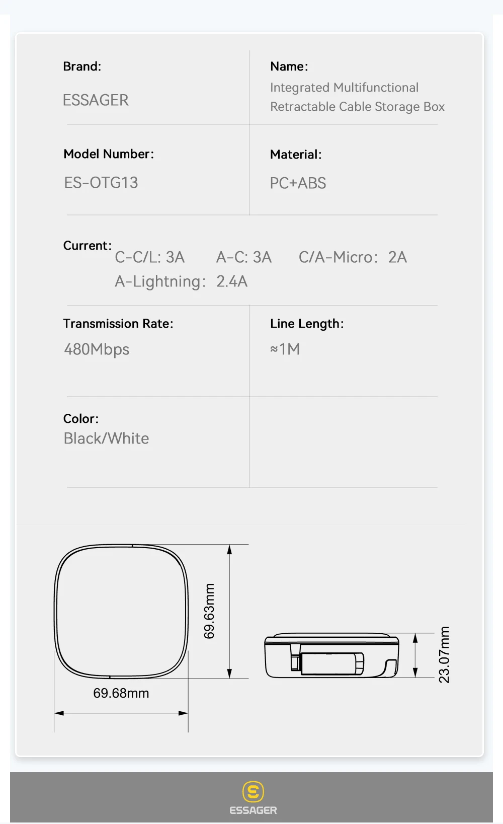 Feature 4: Telescopic cable storage, fast and convenient to use, length: 20cm in first gear/40cm in second gear/70cm in third gear/100cm in fourth gear