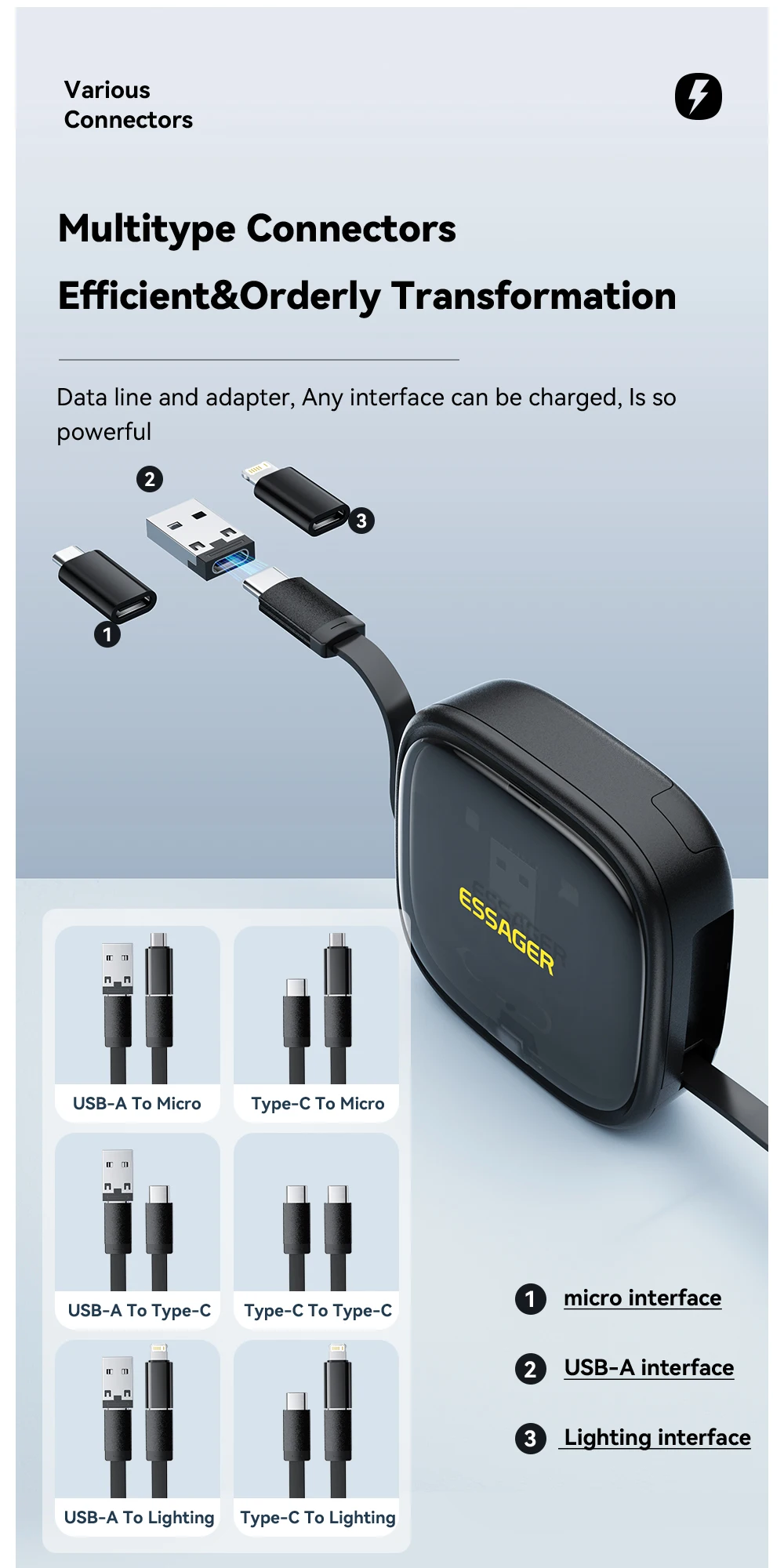 Feature 2: Multiple interfaces can be freely converted to meet all daily charging and data transmission needs