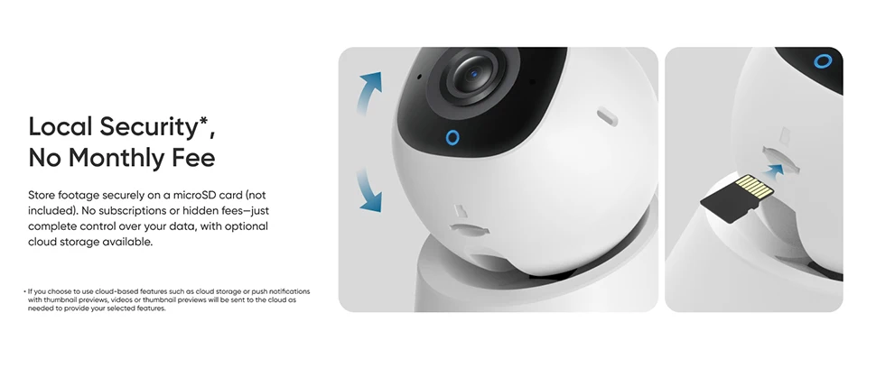 Stockez les images en toute sécurité sur une carte microSD (non incluse).