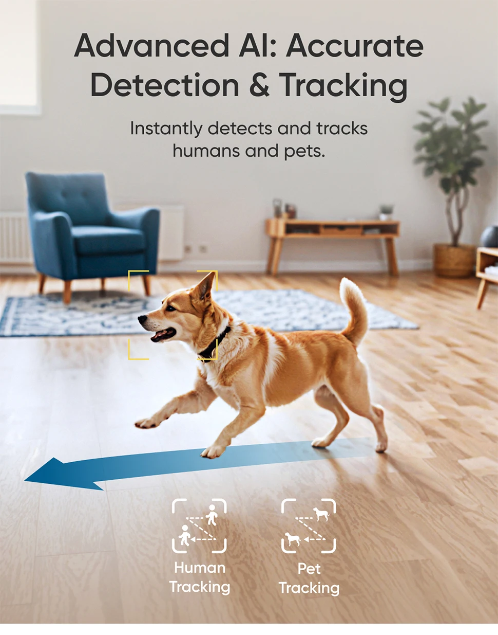 Détecte et suit instantanément les humains et les animaux domestiques.