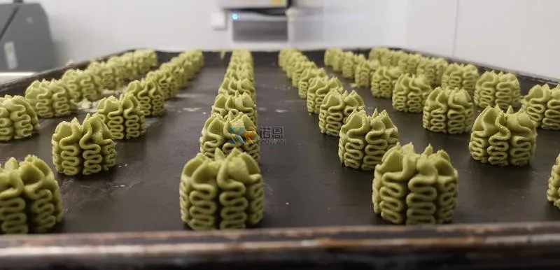 4. la forme remplissante liquide est selon le bakeware et le conteneur différents. La hauteur de remplissage, l'espacement et les quantités peuvent être personnalisés. Il peut également faire toute la plaque de gâteau.