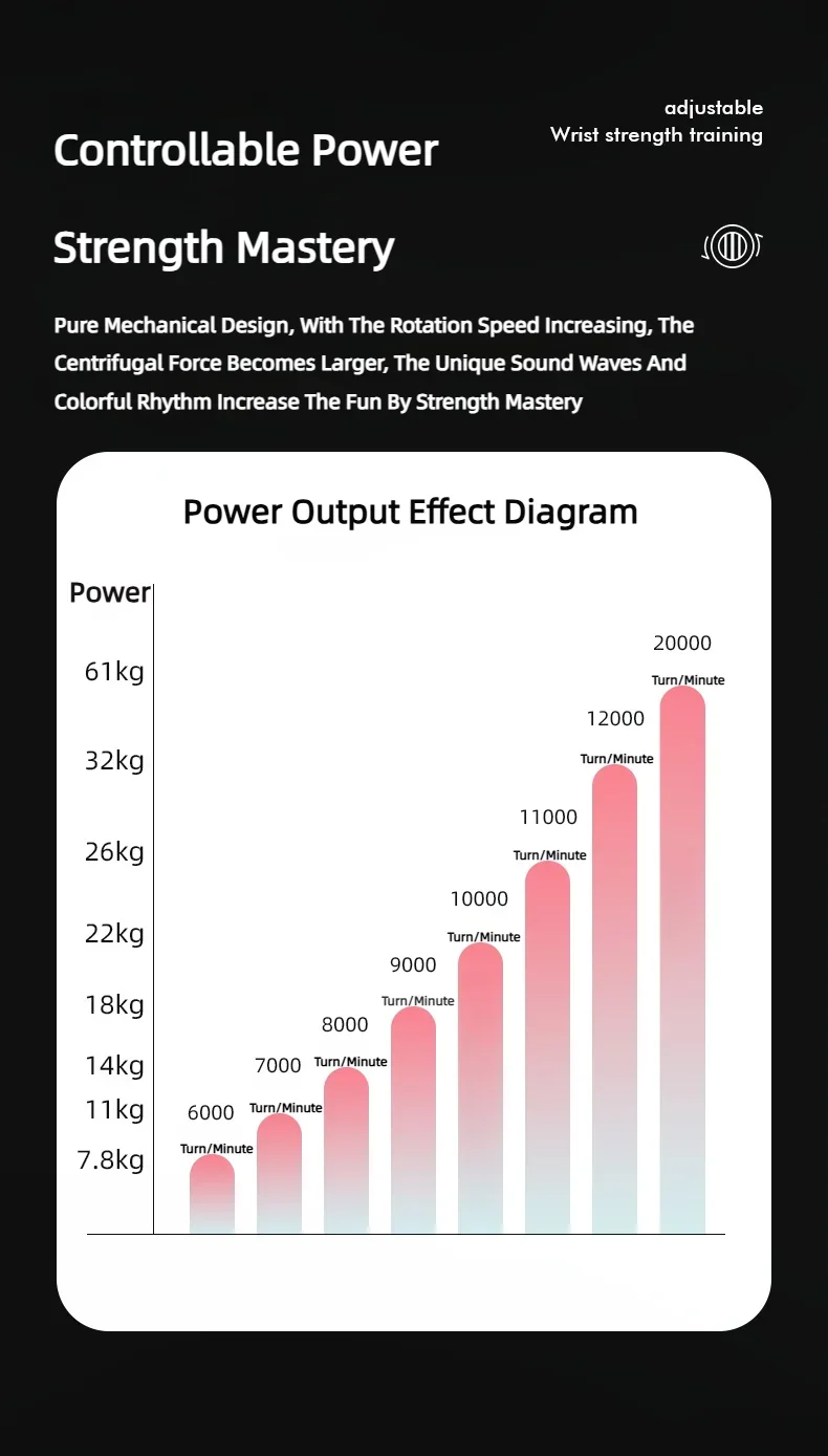 Conception mécanique pure, avec l'augmentation de la vitesse de rotation, la force centrifuge devient plus grande, les ondes sonores uniques et le rythme coloré augmentent le plaisir grâce à la maîtrise des forces