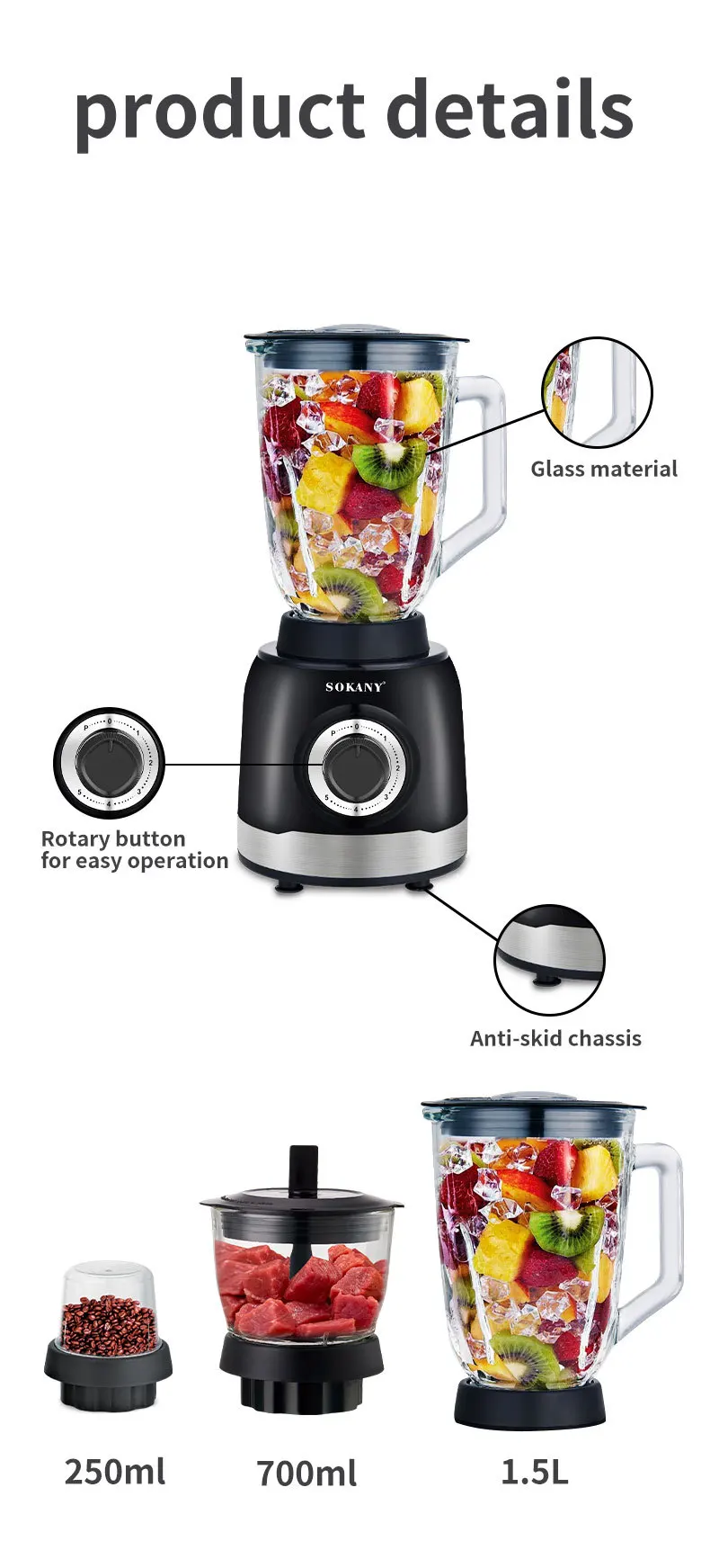 ☕【MULTIFONCTIONNEL 】 Mélangeur et robot culinaire 3 en 1 pour la cuisine combine les fonctions de transformation des aliments, de mélange, de préparation de smoothies, de jus et de broyage. Ses composants interchangeables permettent une fonctionnalité polyvalente, ce qui en fait l'assistant idéal dans votre cuisine, vous apportant, à vous et à votre famille, plus de joie.