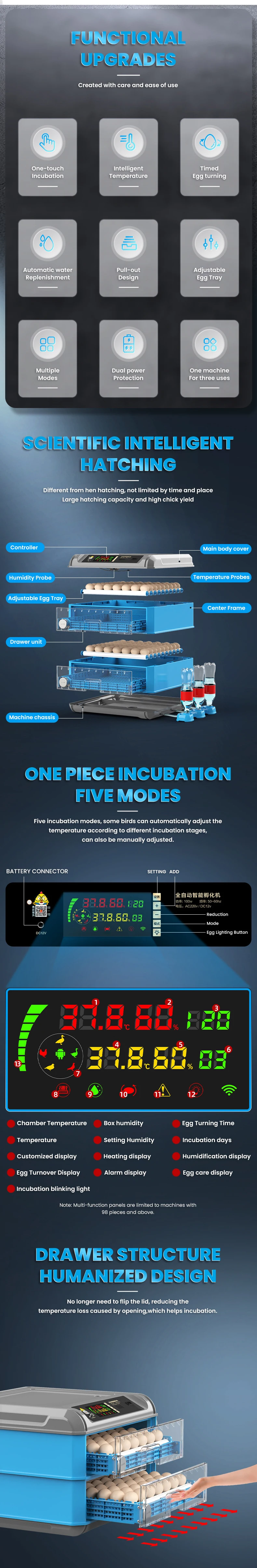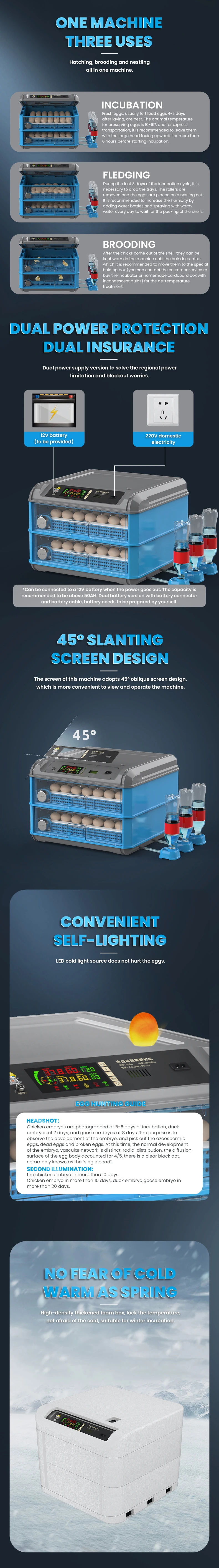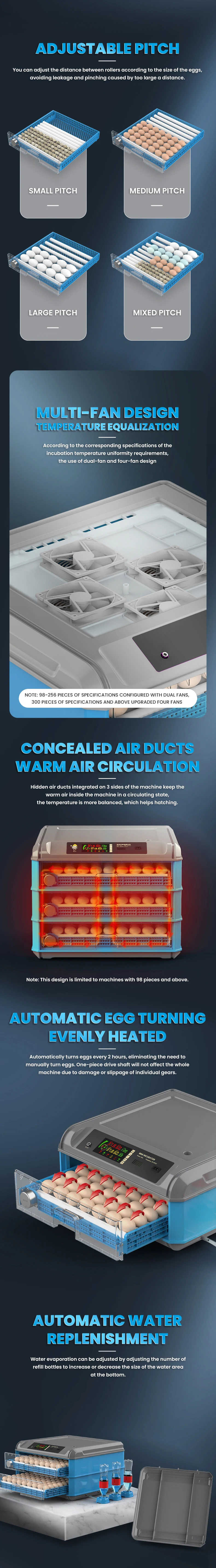 256-500 Capacity Egg Incubator Fully Automatic Dual Power Hatching Machine Chick Roller Automatic Temperature Humidity Control