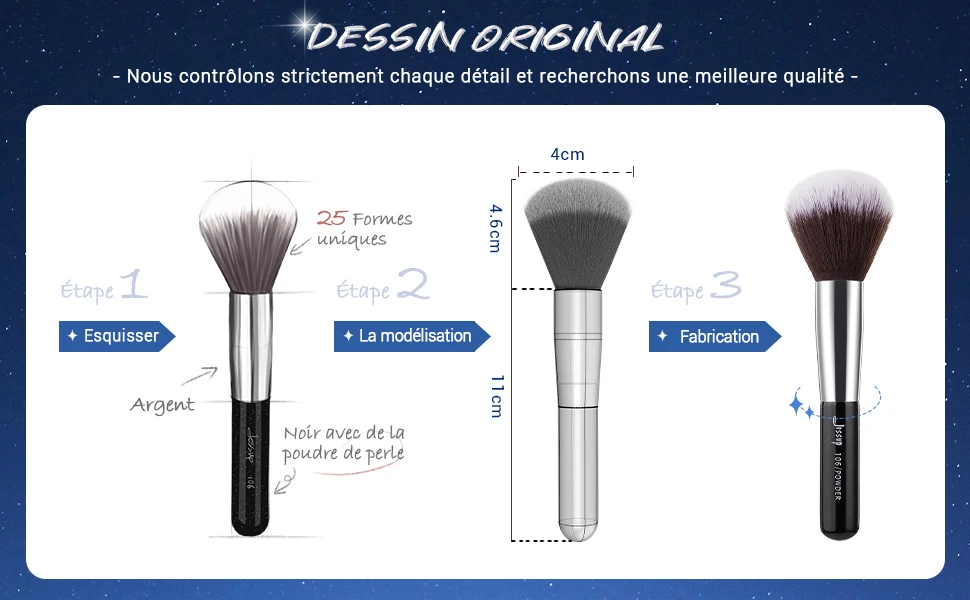 Fabriqué avec des cheveux naturels et synthétiques doux et écologiques, évitant les dommages cutanés, convient même aux peaux les plus sensibles et offrant une finition haute définition avec des fonds de teint liquides, en poudre ou en crème sans aucune absorption ou perte de produit.