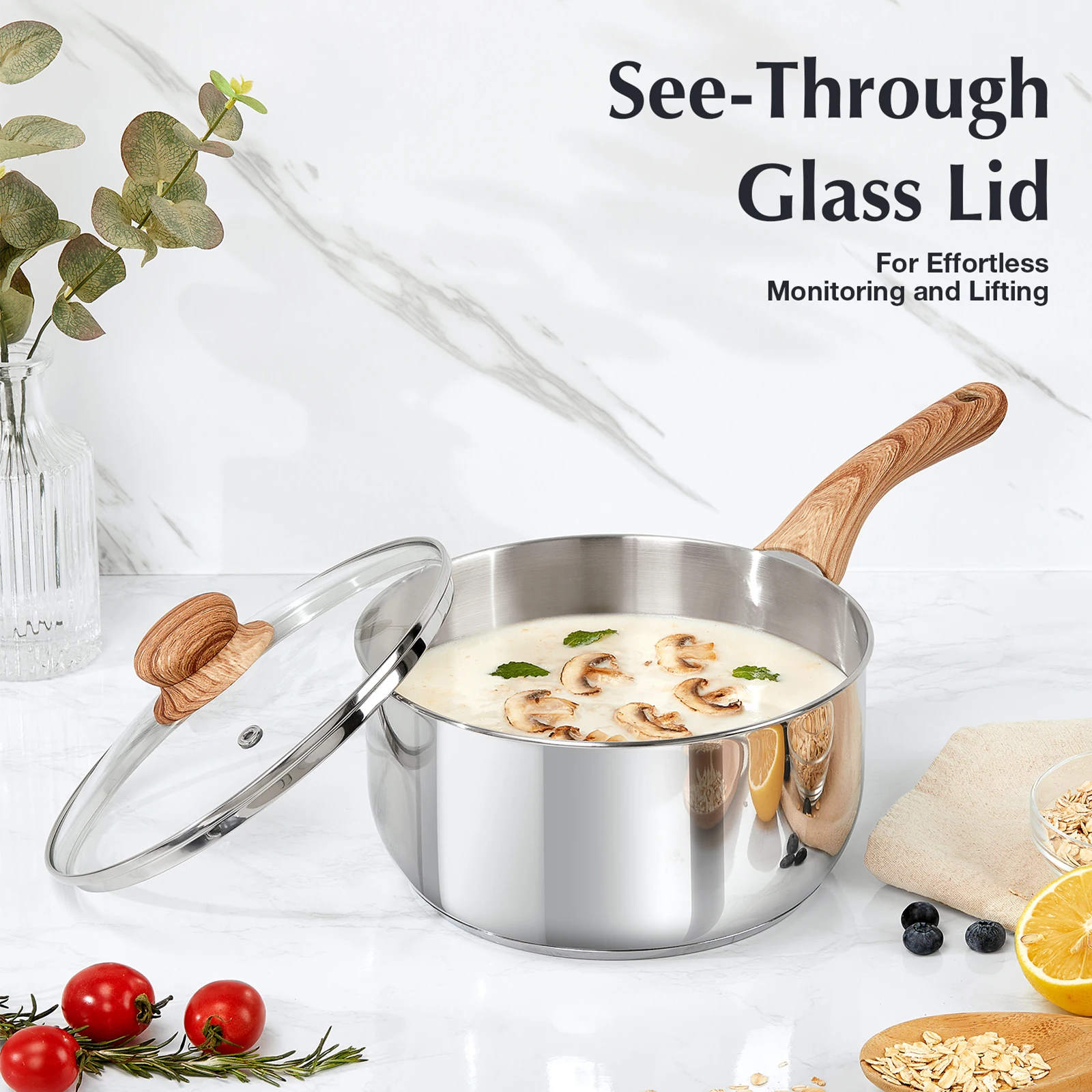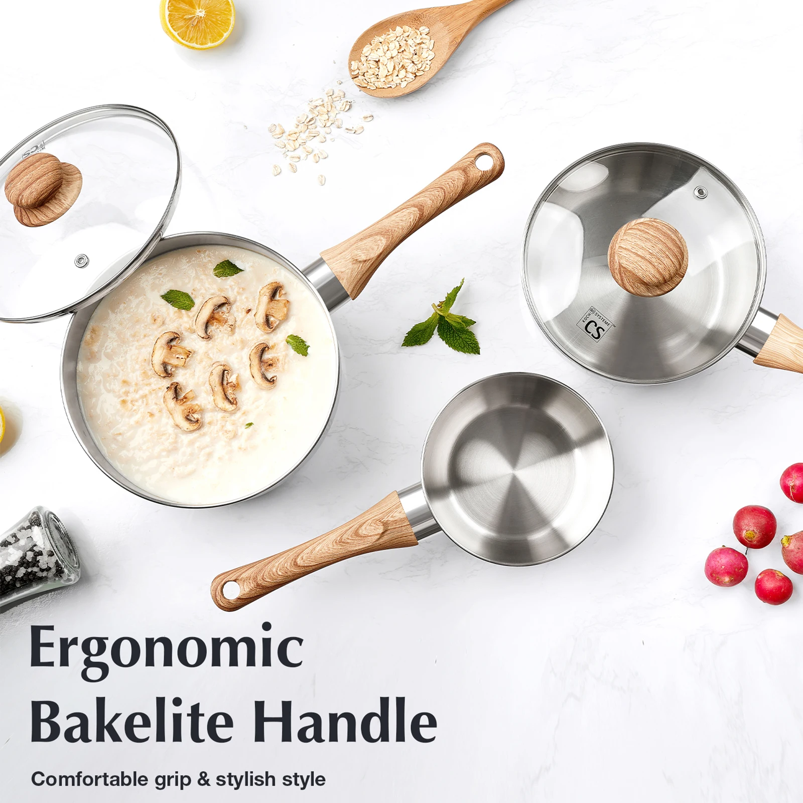 4.Prête à l'induction : spécialement conçue pour les cuisinières à induction, cette casserole en acier inoxydable garantit des performances optimales tout en restant entièrement compatible avec les tables de cuisson en verre, électriques et en céramique.Ensemble de casseroles en acier inoxydable parfait pour cuisinière à induction.
