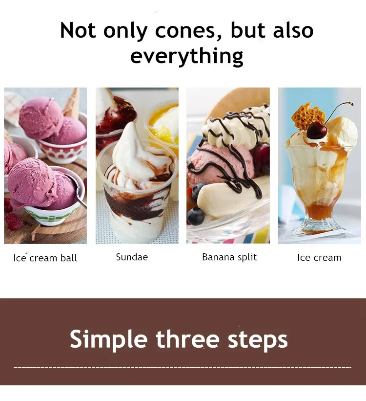 Tips: this is a home machine, the inner container can only be frozen once, and about 8 cones can be made at a time.
