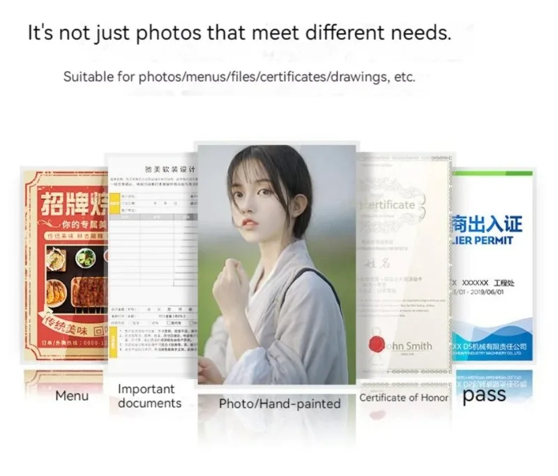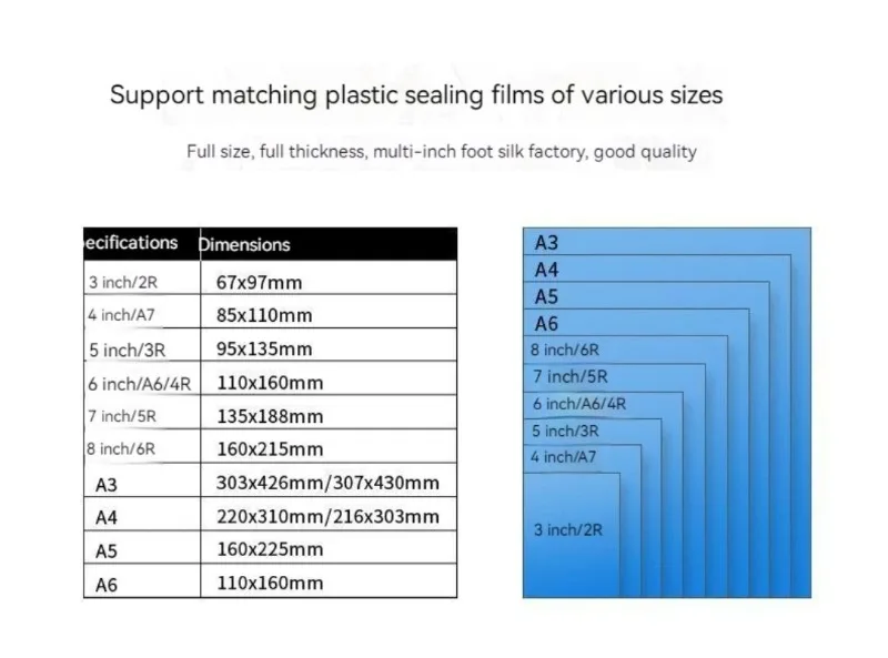 * A4 and below, supports various sizes of laminating, suitable for photos, menus, documents, certificates, drawings, etc.