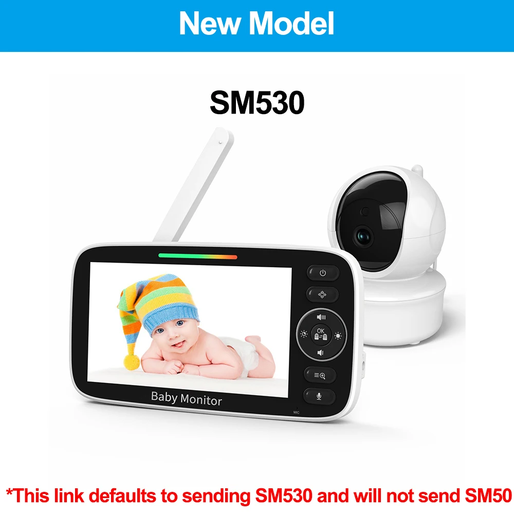 Moniteur vidéo pour bébé de 5 pouces avec caméra, Zoom 4X, surveillance de la température, Audio bidirectionnel, baby-sitter électronique, berceuse intégrée SM50
