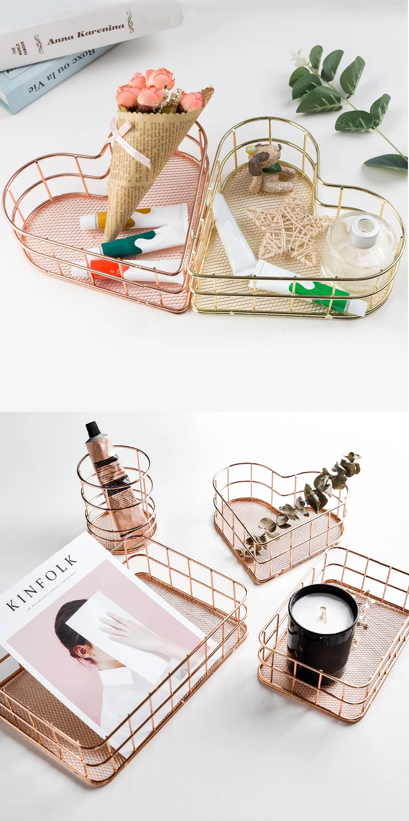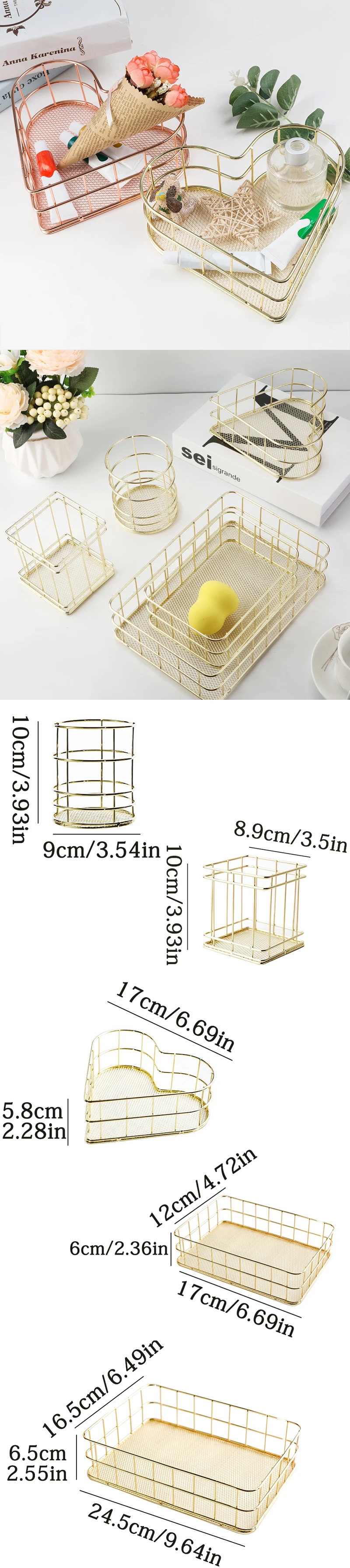 Panier de rangement en fer et métal doré de Style nordique, organisateur multifonctionnel pour articles divers, boîte de rangement pour bijoux