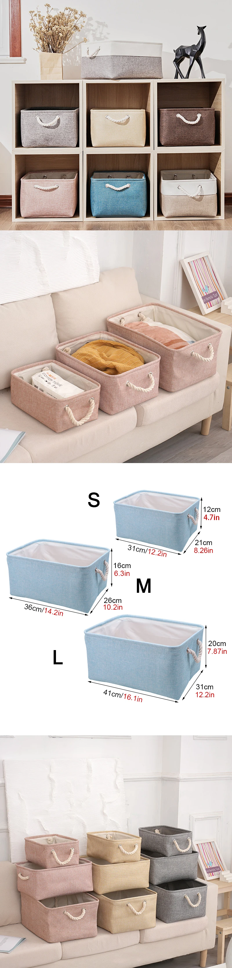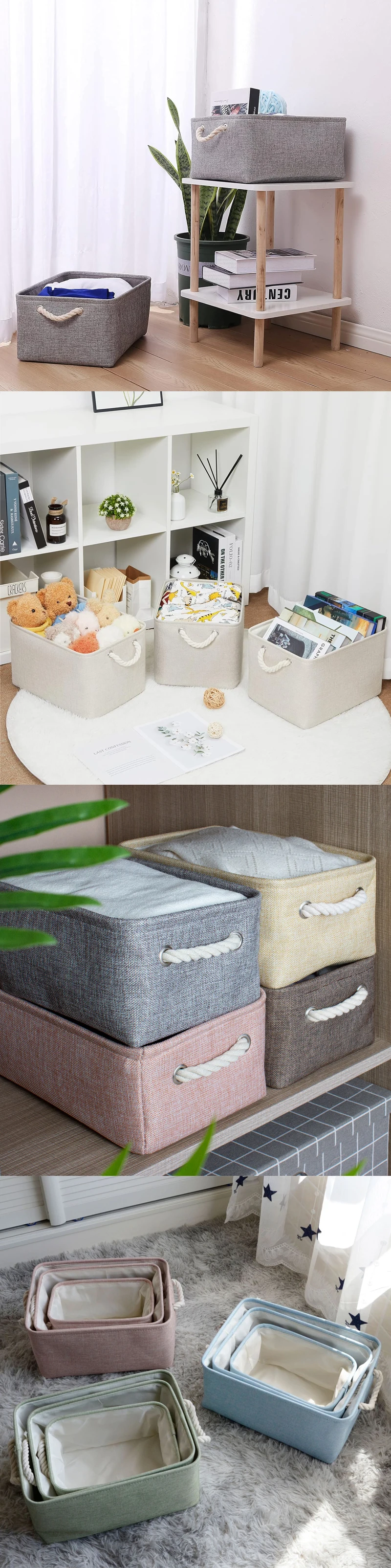 Paniers de rangement pliables en tissu de lin, organisateur de jouets pour enfants, boîte de rangement pour vêtements et articles divers, panier à linge