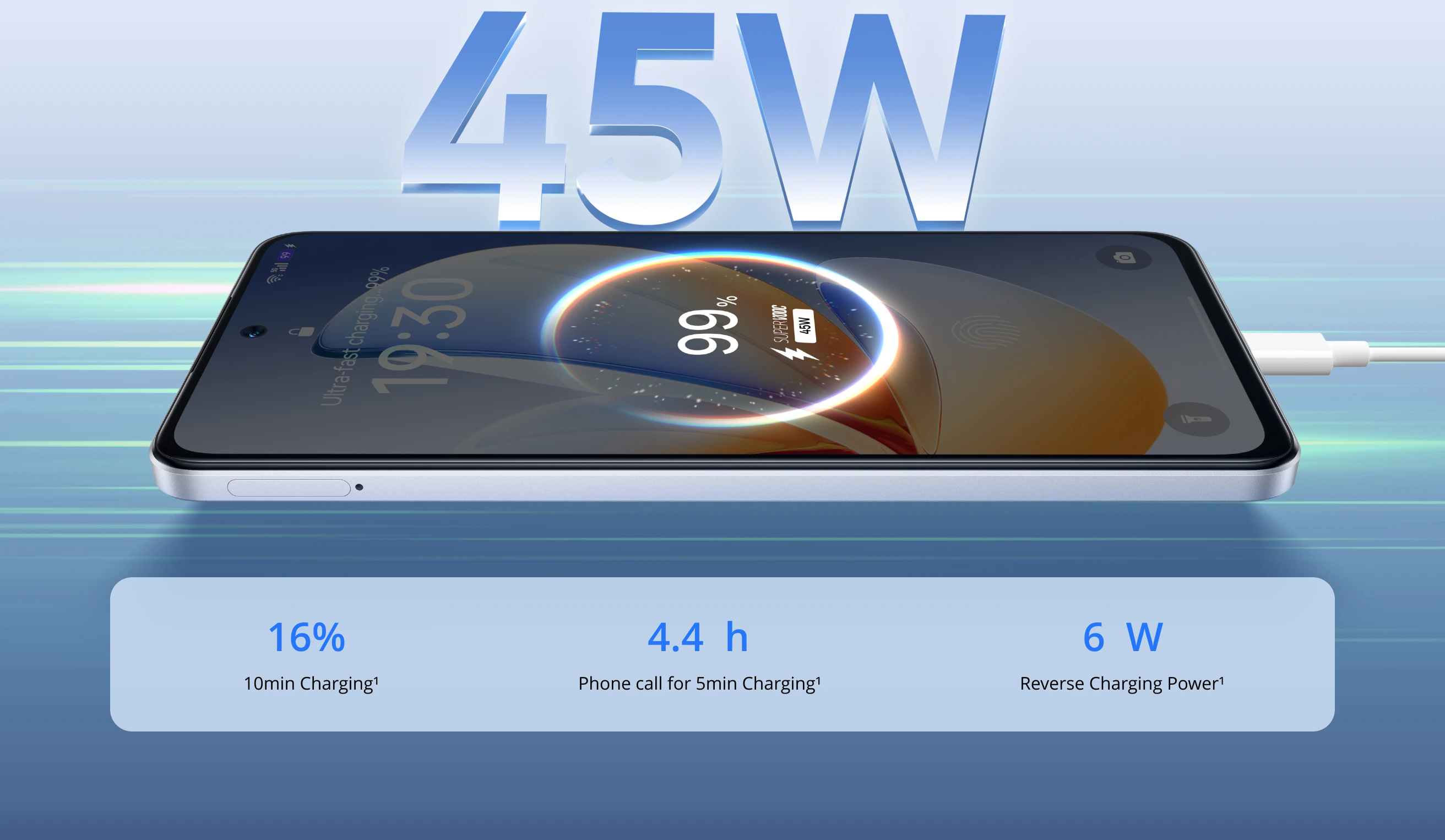 Batterie :Batterie massive 6300 mAh, charge rapide 45 W
