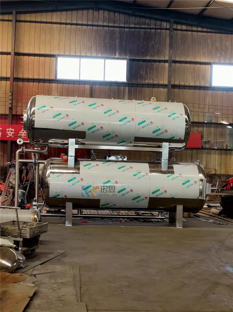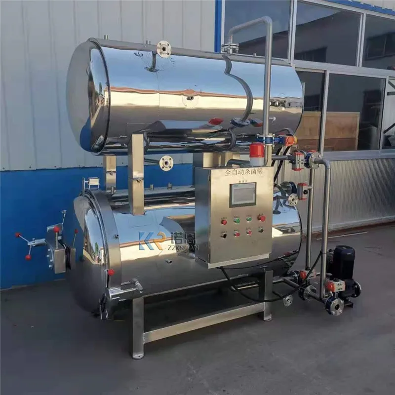 Les pots de stérilisation sont divisés en chauffage à la vapeur, chauffage électrique et types à double usage à vapeur électrique. Il y a type de bain d'eau, type de jet, type de série à trois pots, type parallèle à double pot, type horizontal, type de bain d'eau à double couche, type rotatif automatique, pot de stérilisation de type rotatif, qui est divisé en pot de stérilisation manuel, semi-automatique et entièrement automatique à haute température et haute pression. Il existe deux types d'acier inoxydable et d'acier au carbone. La machine est largement utilisée dans l'industrie alimentaire.