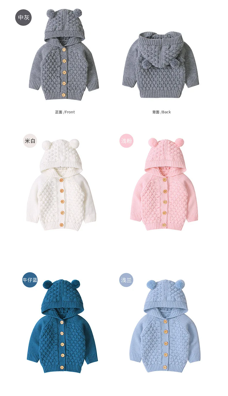 Sweat à capuche tricoté pour bébé fille et garçon de 0 à 24 mois, veste chaude d'automne à manches longues, vêtements d'extérieur