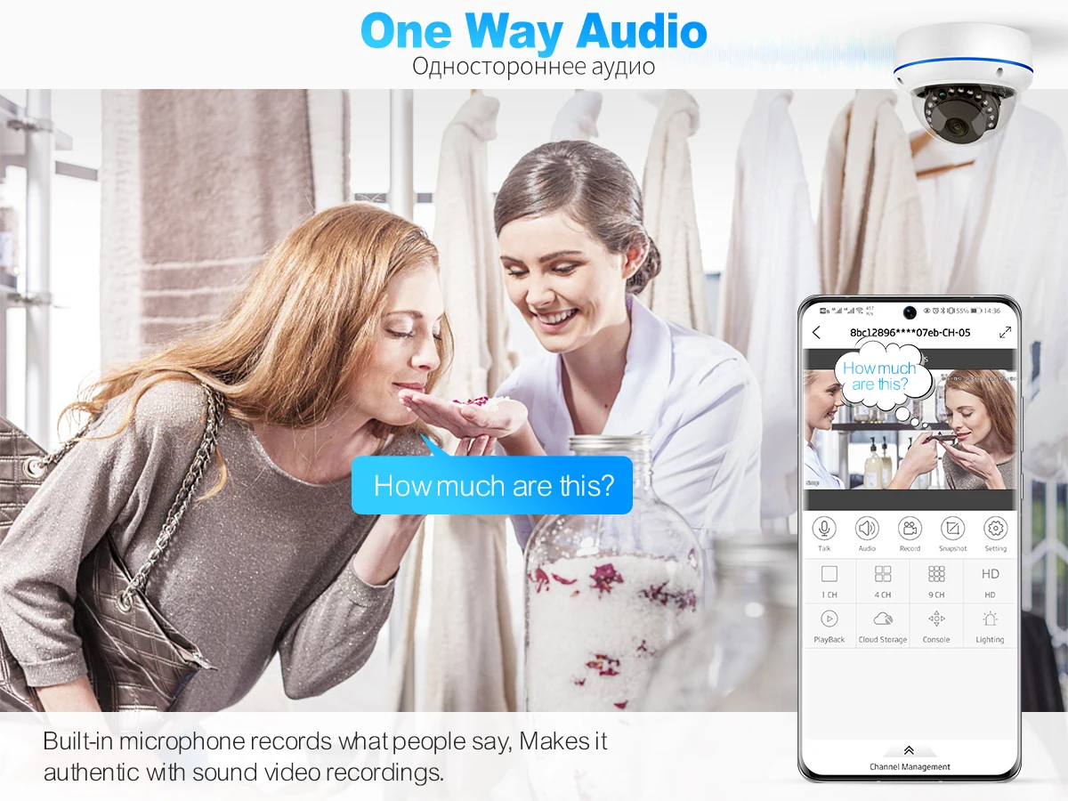 Basé sur la technologie P2P (peer to peer), prend en charge l'installation plug-and-play.Accédez à la caméra IP via son interface Web via Internet Explorer, elle est également livrée avec une application gratuite pour smartphone (Android et iPhone) pour une visualisation à distance depuis n'importe où.