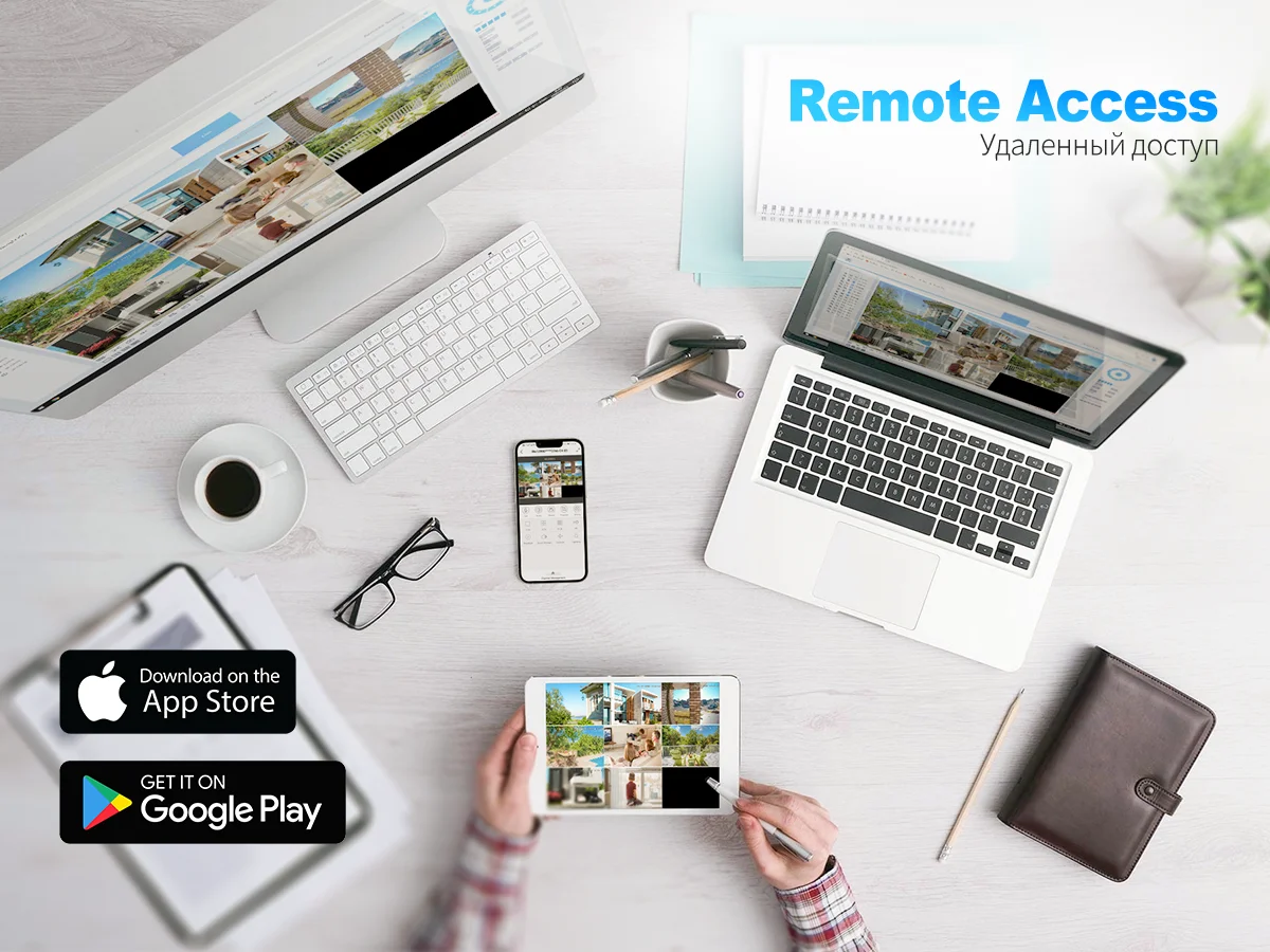 Prend en charge l'accès aux appareils iOS et Android. Téléchargez l'application gratuite dans Apple App Store/Google Play.