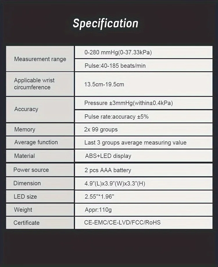 Blood Pressure Measurement Range: 0mmHg~290mmHg