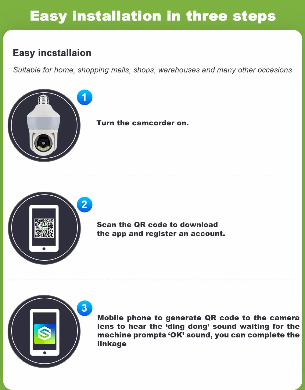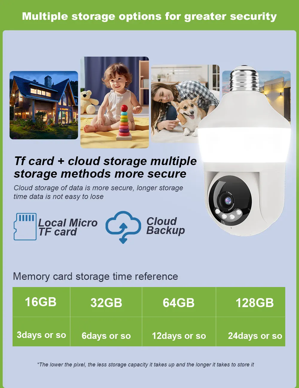 *Fonction d'alarme : lorsque la caméra à ampoule détecte quelqu'un entrant dans la zone de prise de vue à temps, elle envoie une notification d'alarme sur votre téléphone mobile.