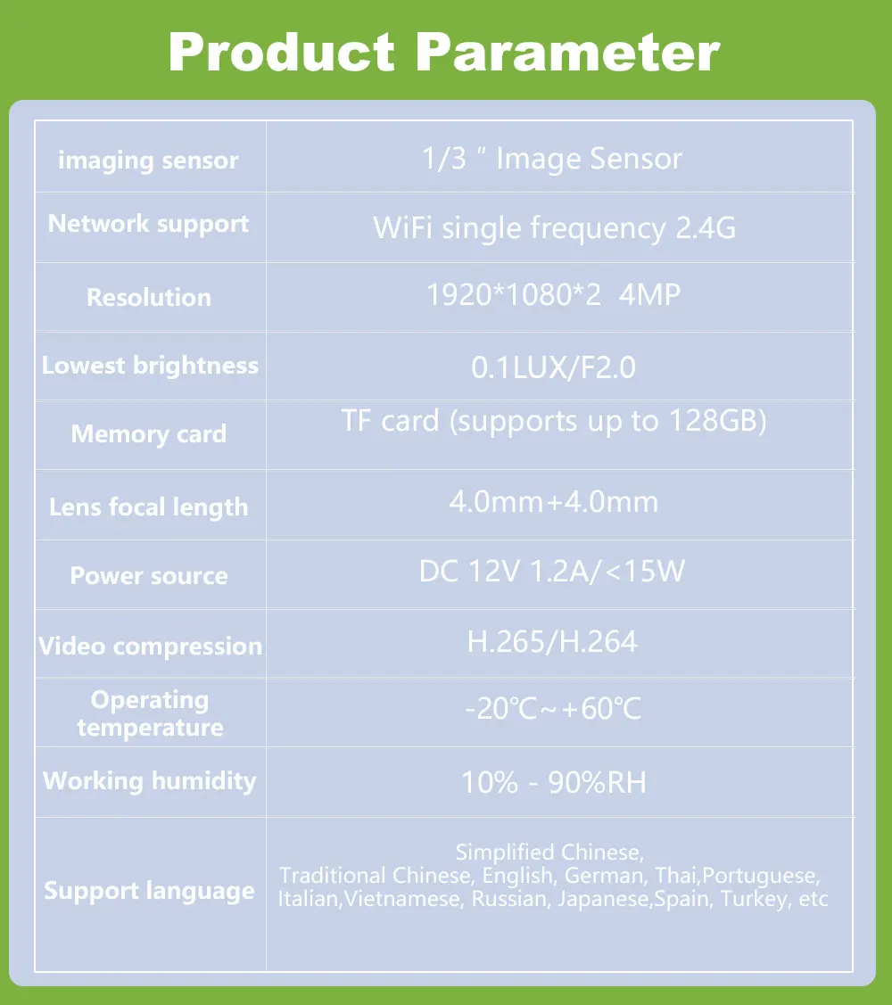 * Vision nocturne à double lumière : équipé de 4 LED blanches et de 4 LED infrarouges, vous pouvez voir des images claires même dans un environnement complètement sombre, prenant en charge la vision nocturne en couleur.