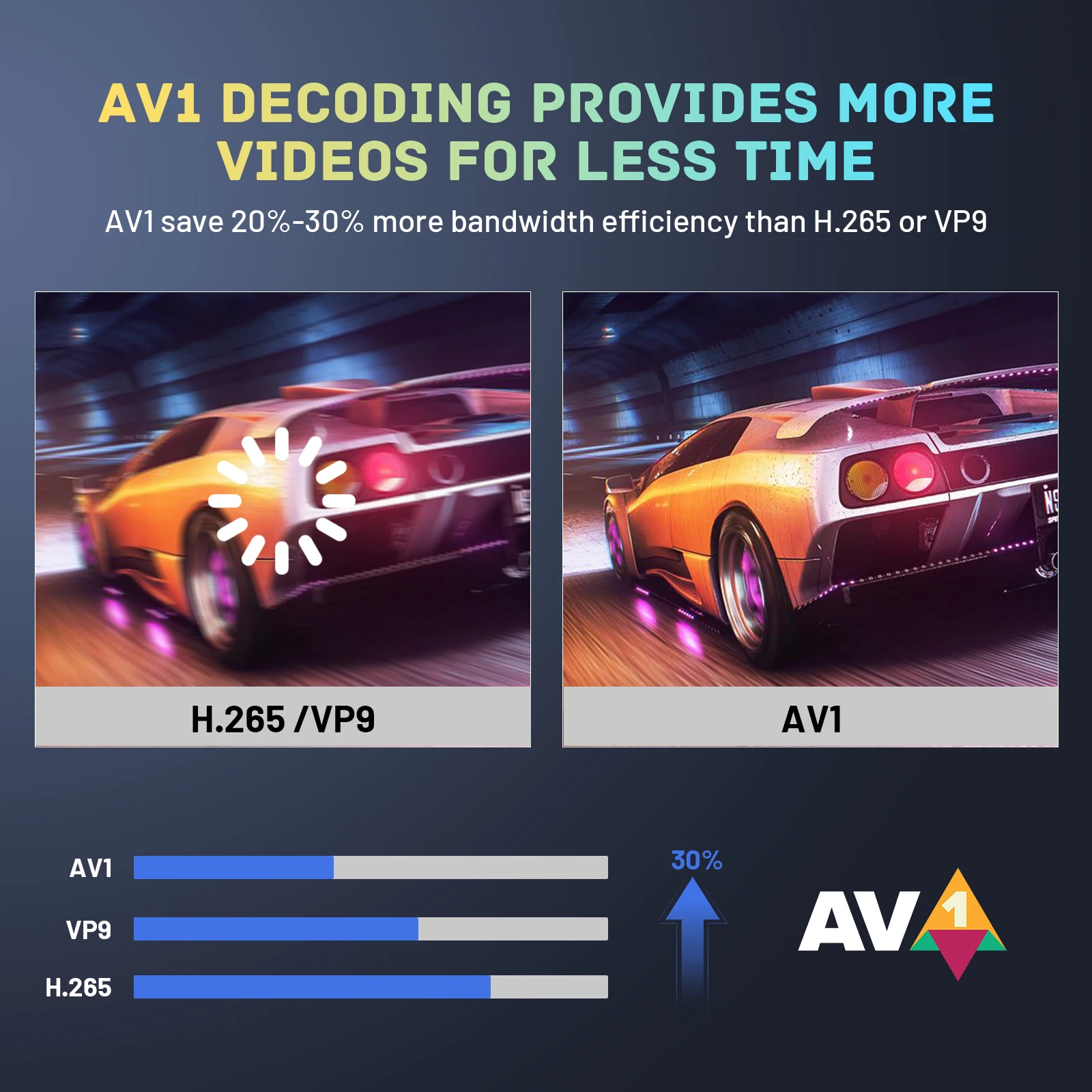 Sortie vidéo 4K à 60 ips avec décodage matériel AV1/VP9/H.265 et HDR